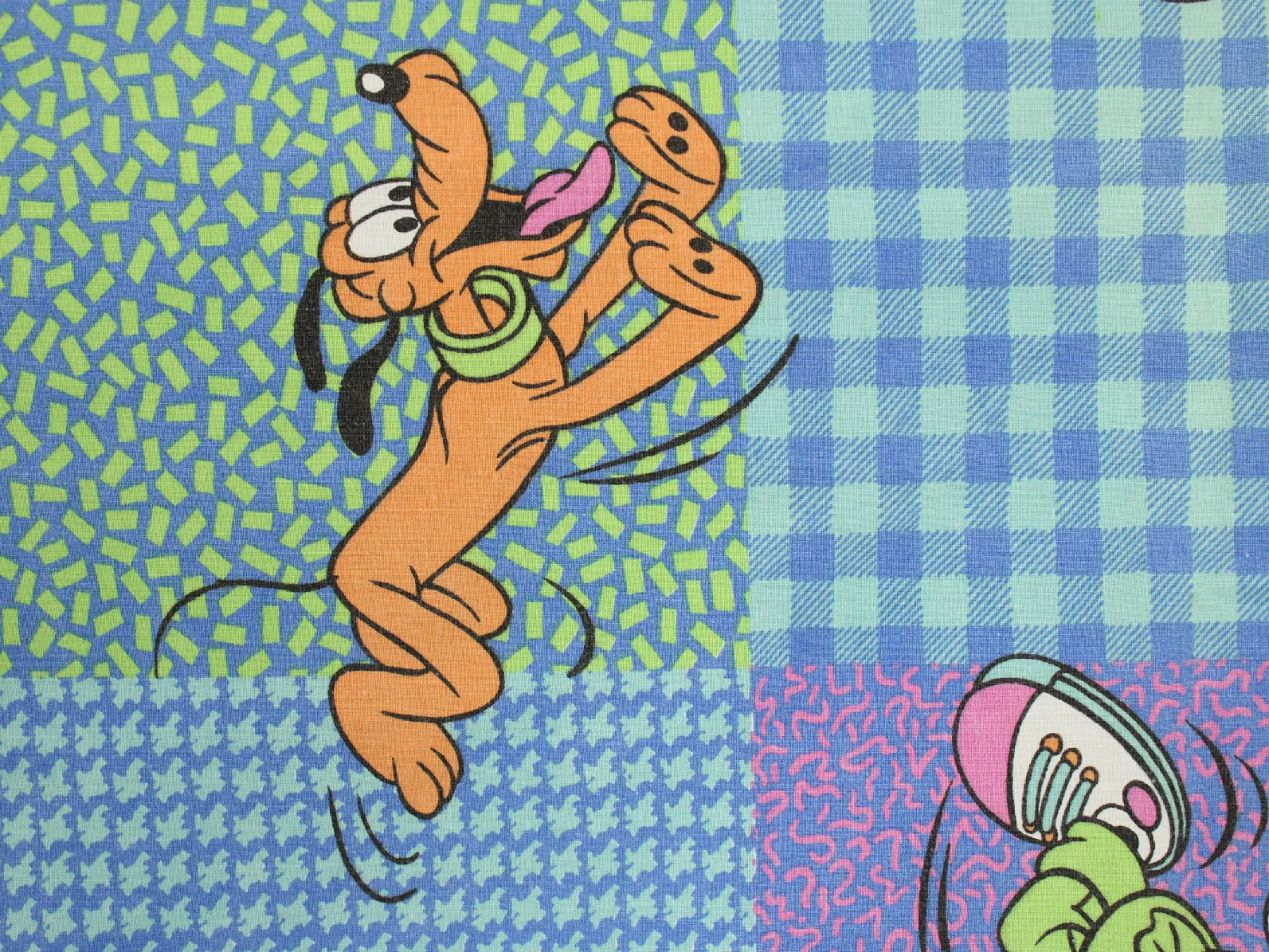 緑と紫のギンガムチェックが可愛い、ミッキー&プルート。