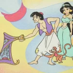 ディズニー、アラジン、キャラクタービンテージシーツ。フランス、90年代。