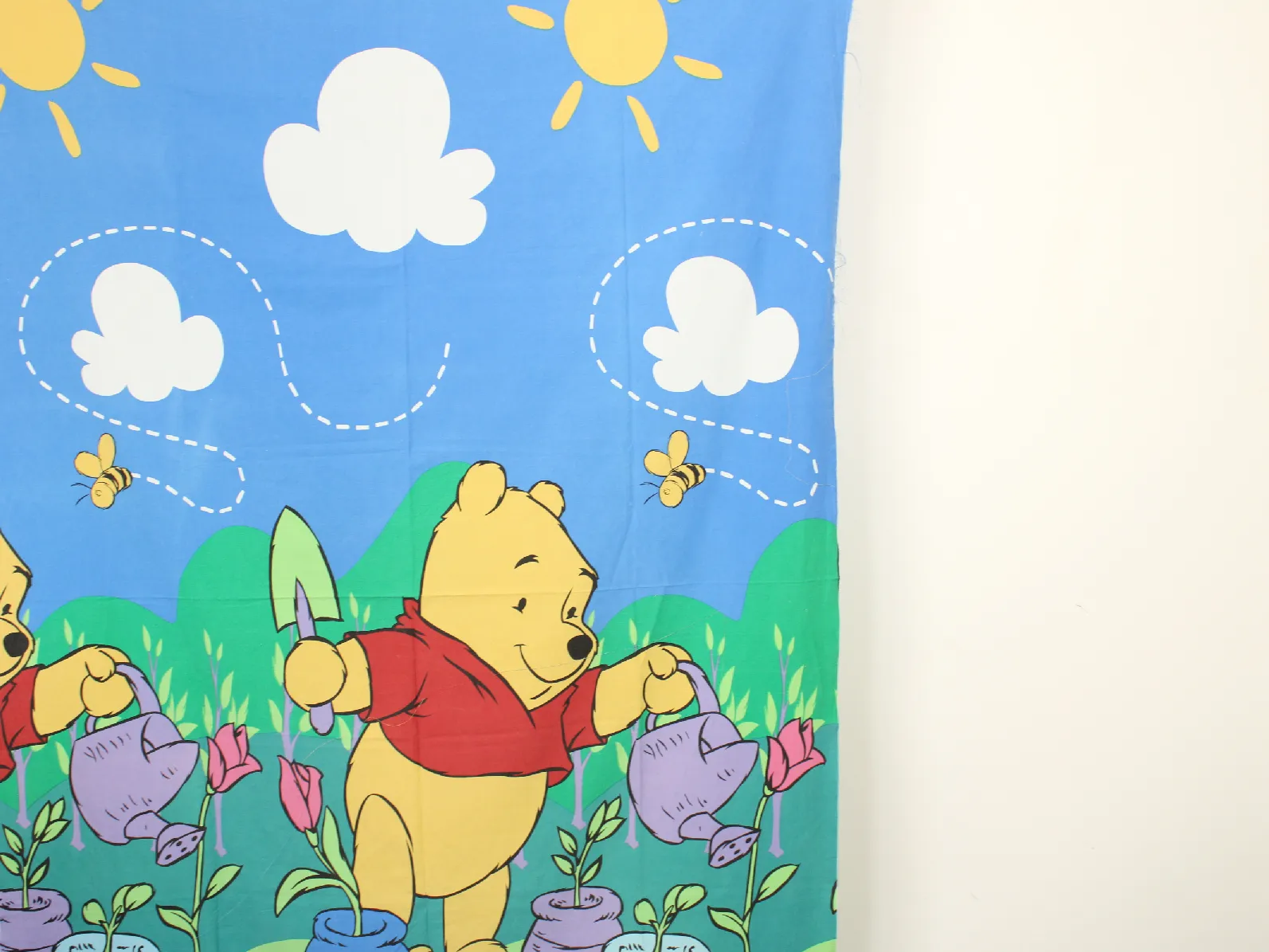 ディズニー、くまのプーさん、キャラクタービンテージシーツ。解体生地