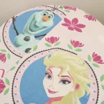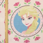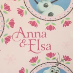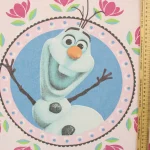 ピンクの花柄背景のアナ、エルサ、オラフ。大きめの絵柄。