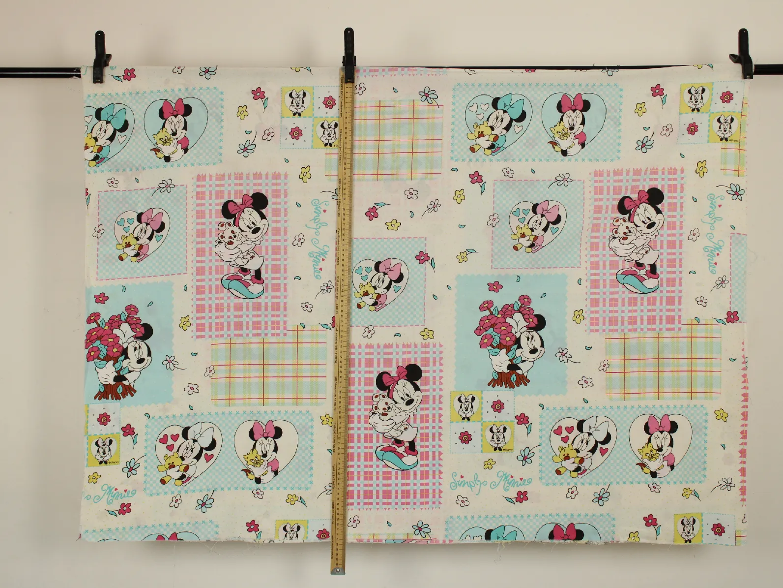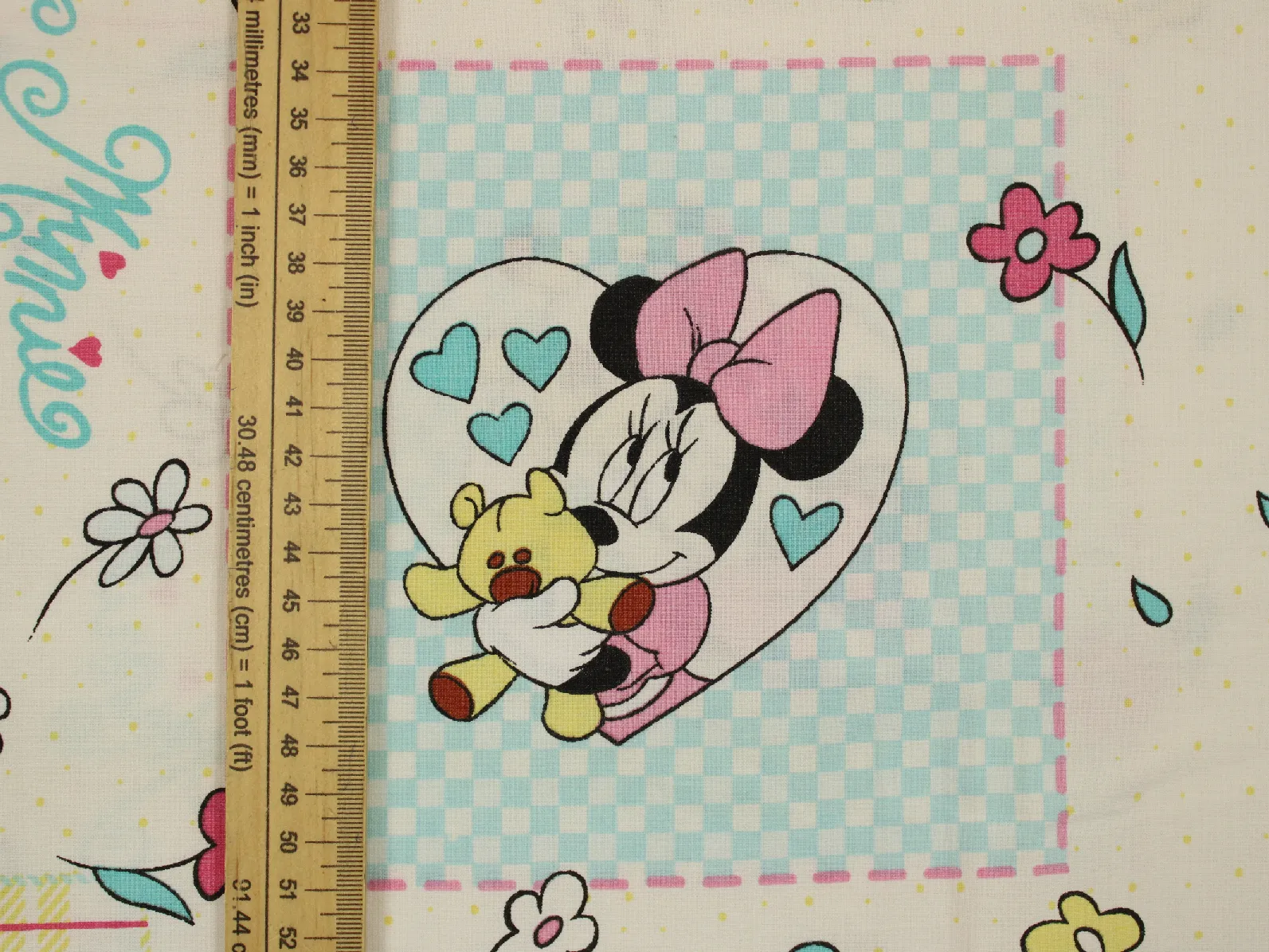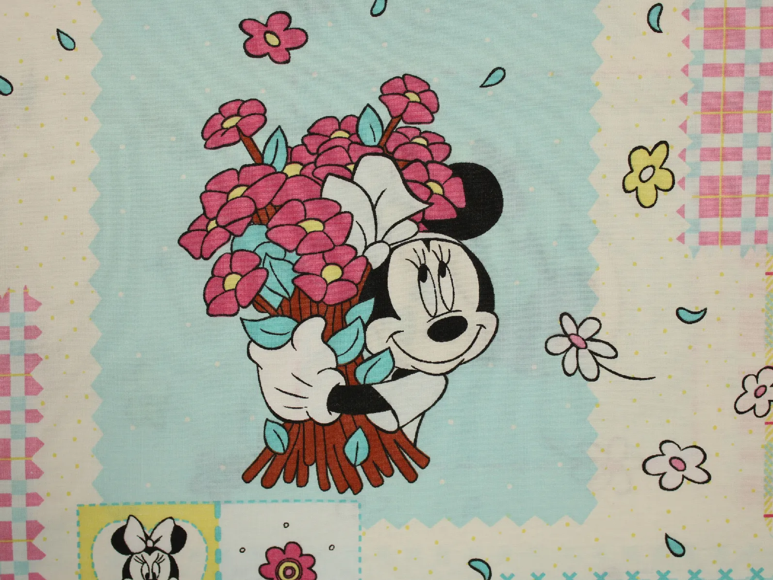ディズニー、ミニー、キャラクタービンテージシーツ。解体生地。
