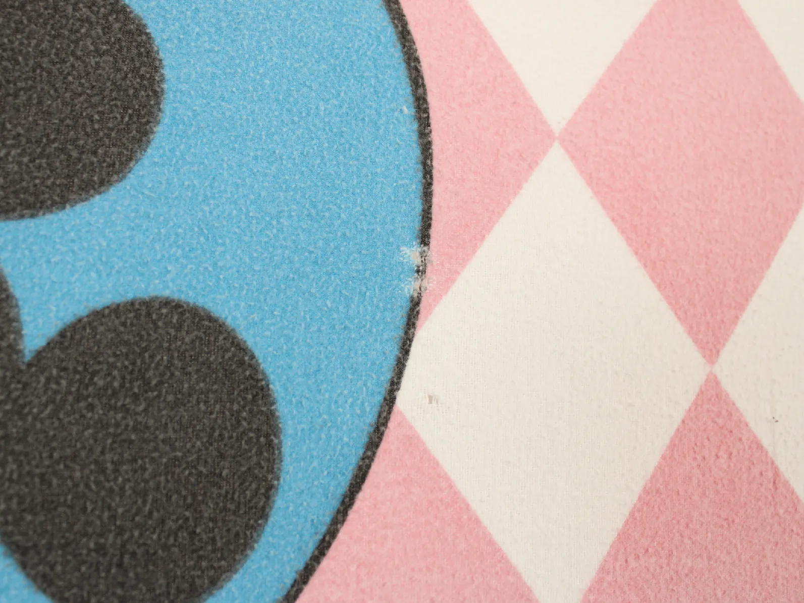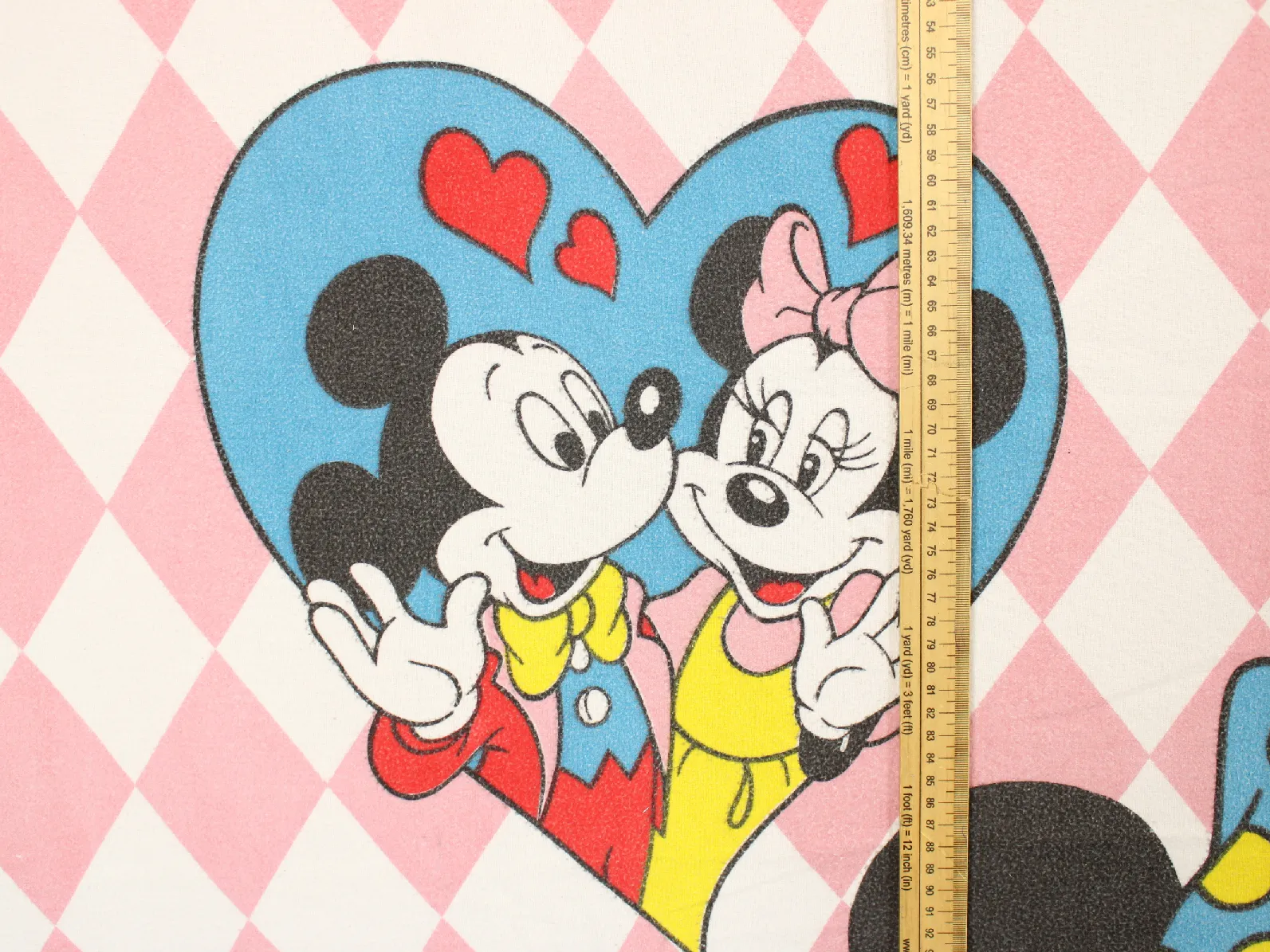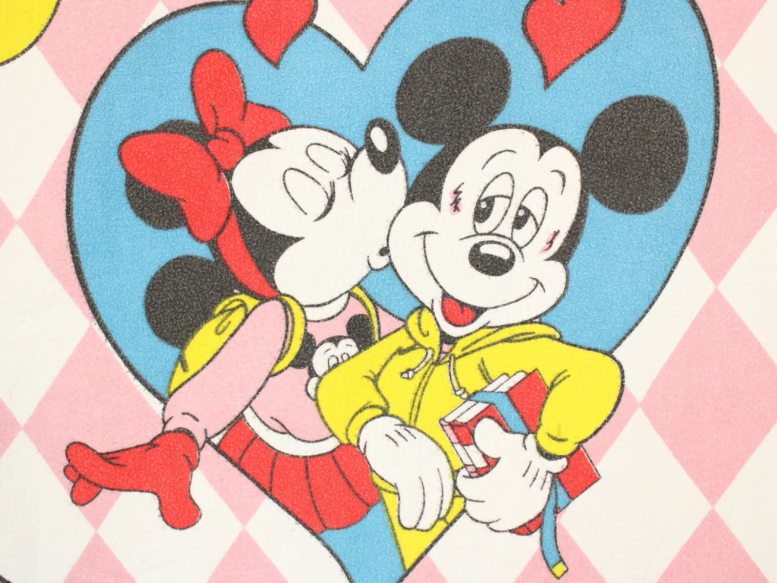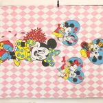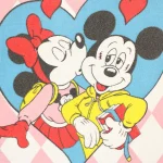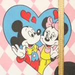 ピンクのチェッカー模様に、ハートに囲まれた大きな絵柄のミッキー&ミニー。