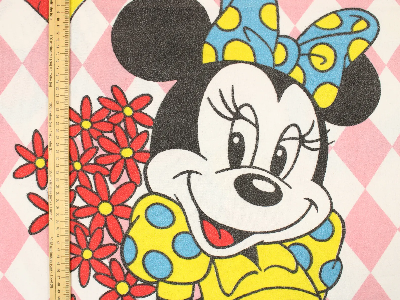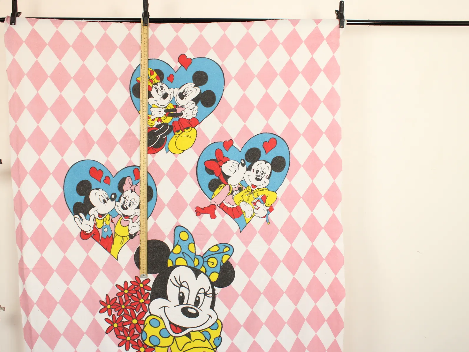 ディズニー、ミッキー&ミニー、キャラクタービンテージシーツ。解体生地。