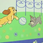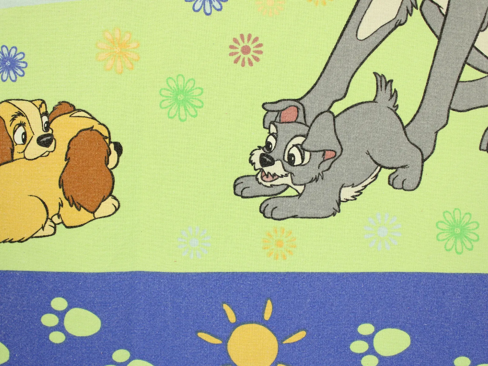 ディズニー、わんわん物語、キャラクタービンテージシーツ。解体生地