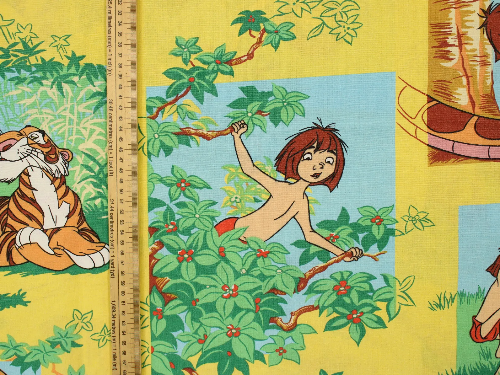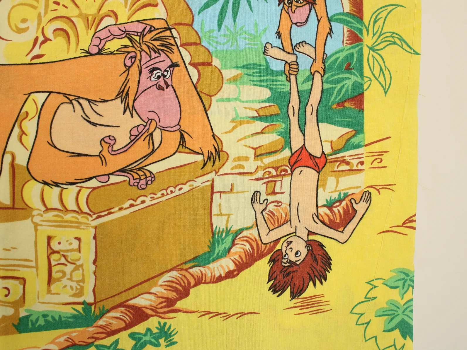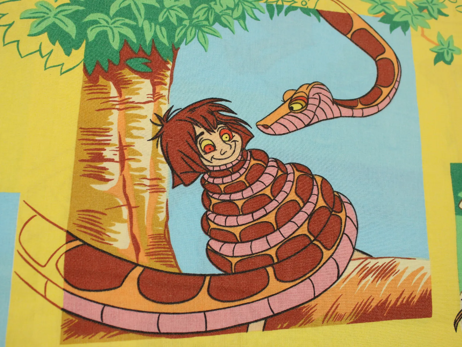 ディズニー、ジャングル・ブック、キャラクタービンテージシーツ。解体生地