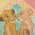 パステルカラーのカラフルな背景に、子どもシンバとナラが可愛い人気柄。