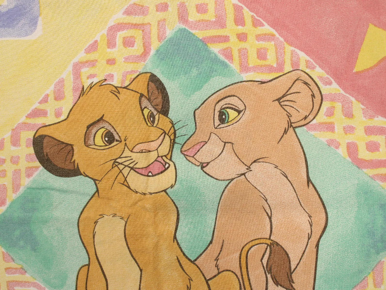 ディズニー、ライオンキング、キャラクタービンテージシーツ。解体生地