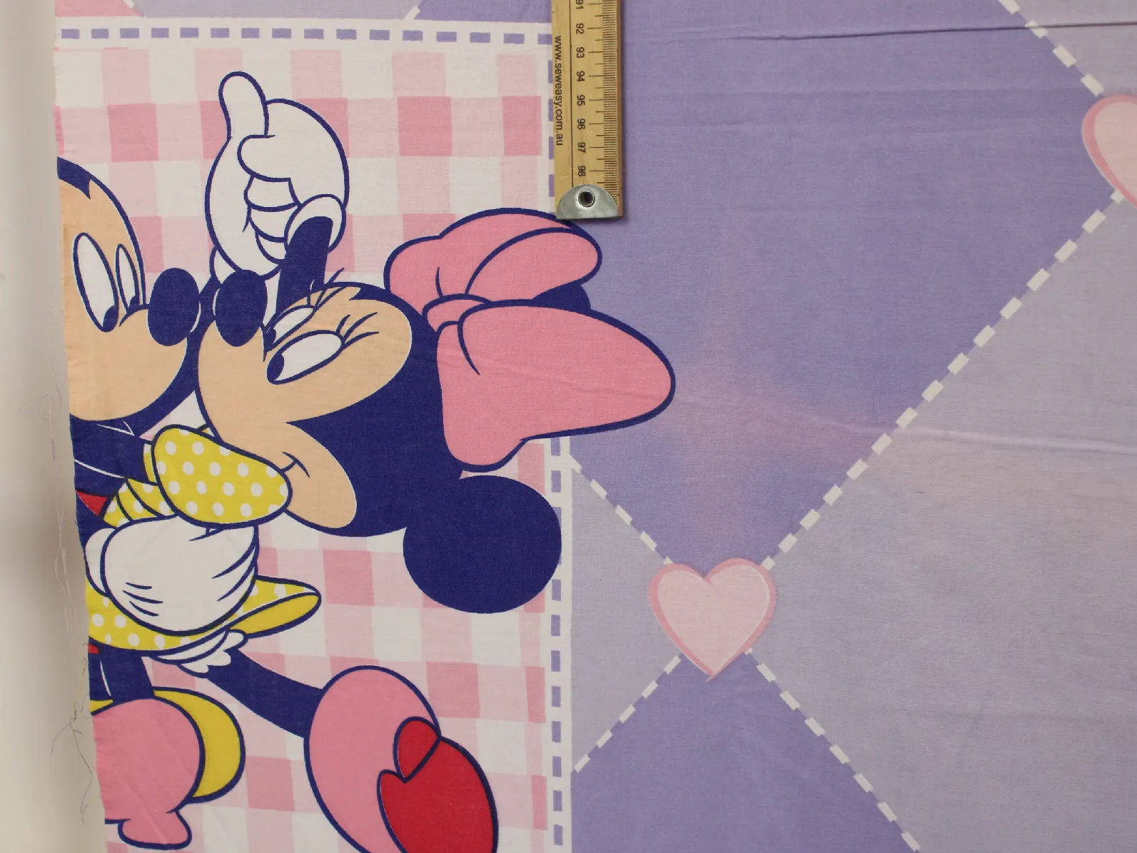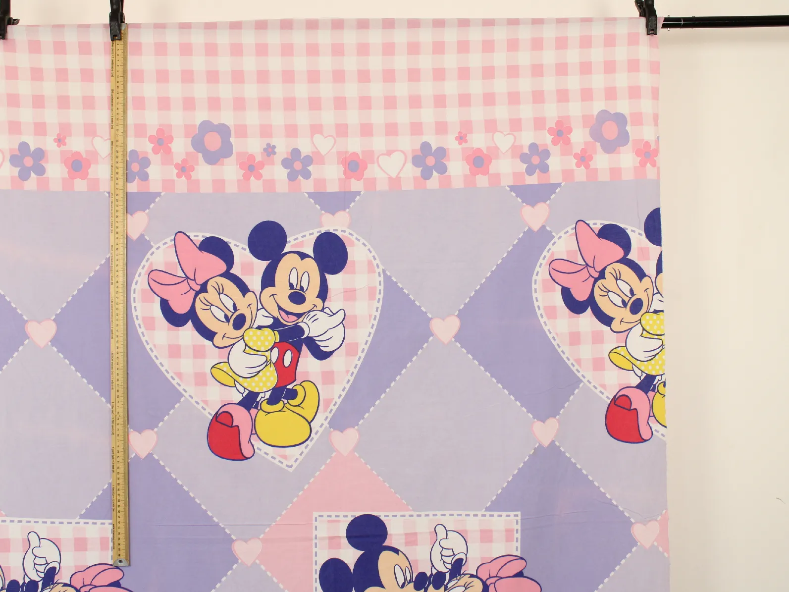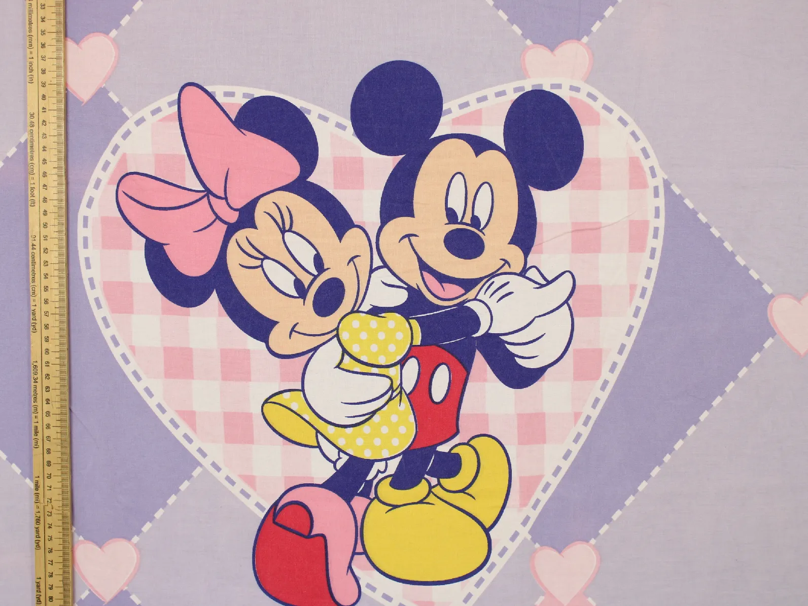 ディズニー、ミッキー&ミニー、キャラクタービンテージシーツ。解体生地。