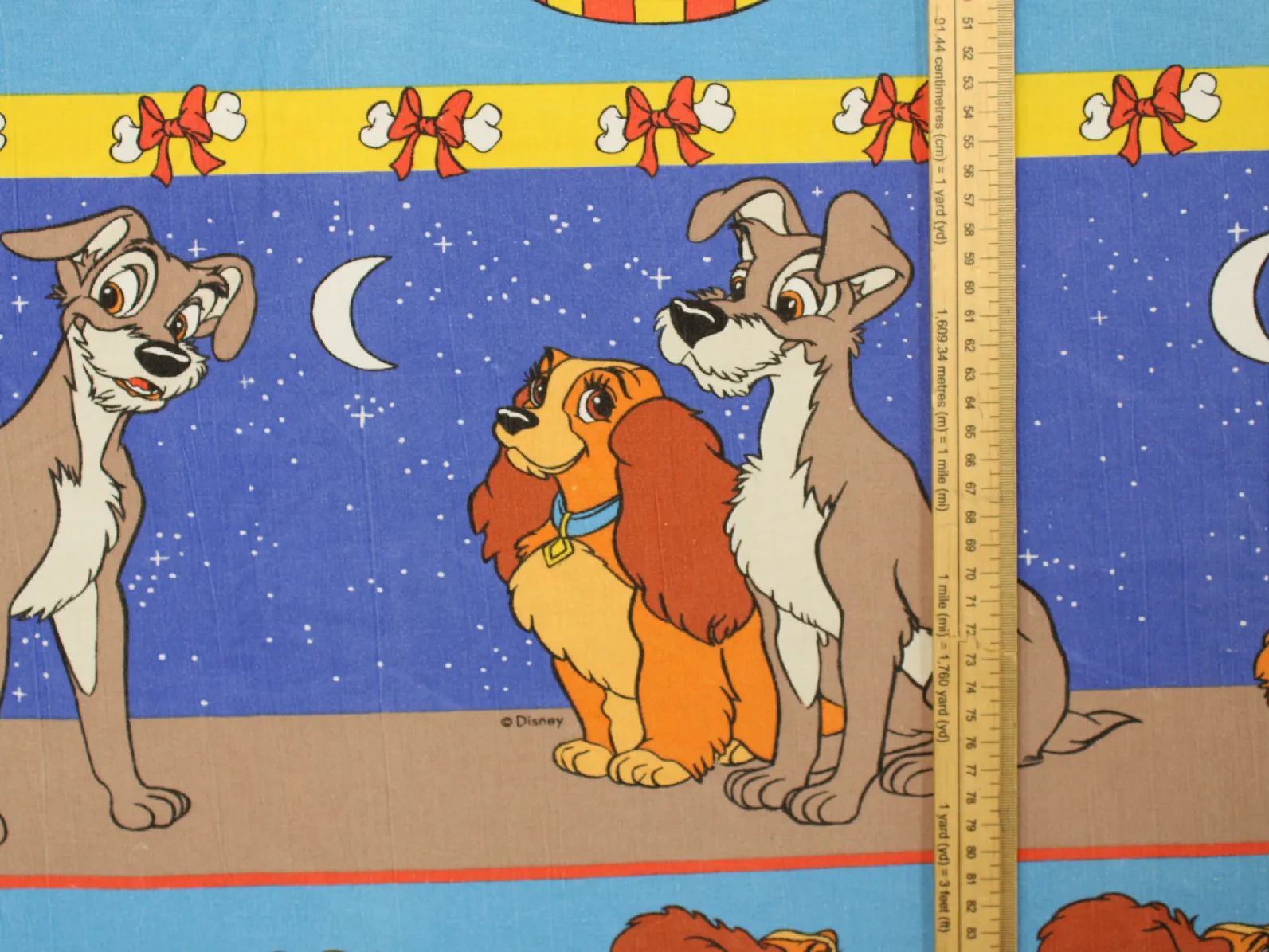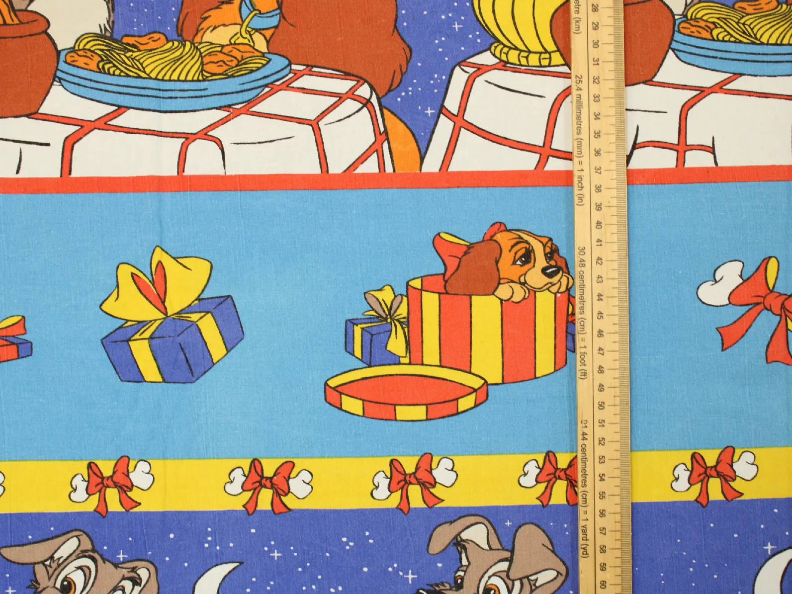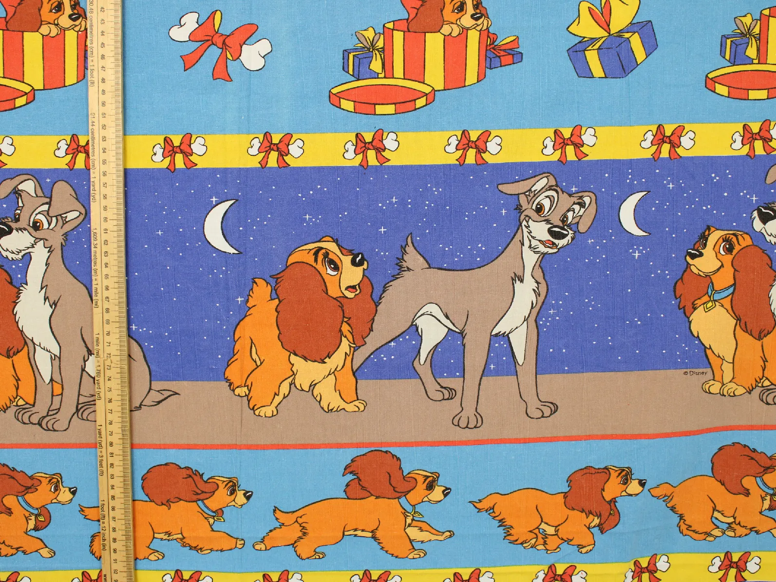 ディズニー、わんわん物語、キャラクタービンテージシーツ。解体生地。