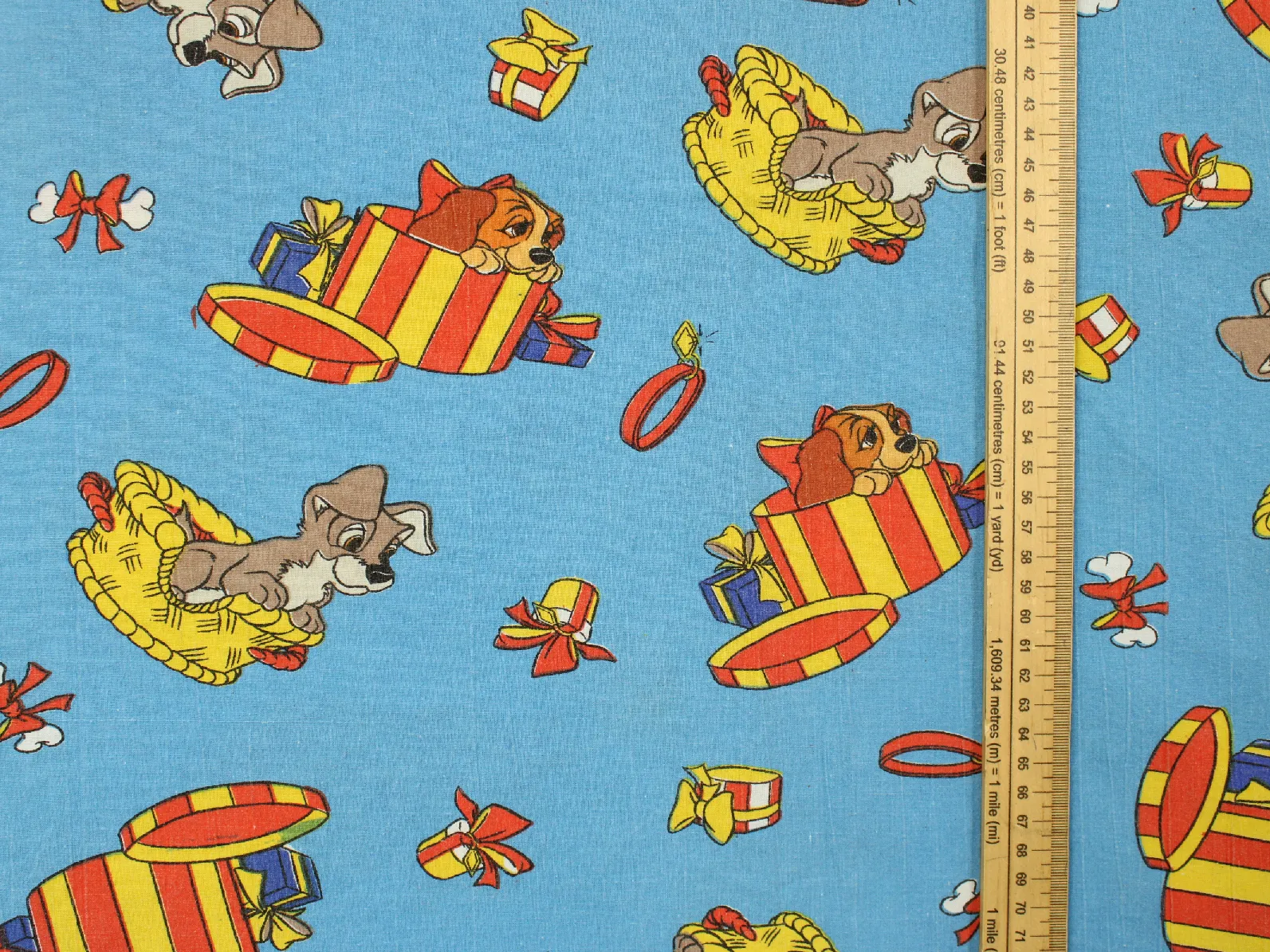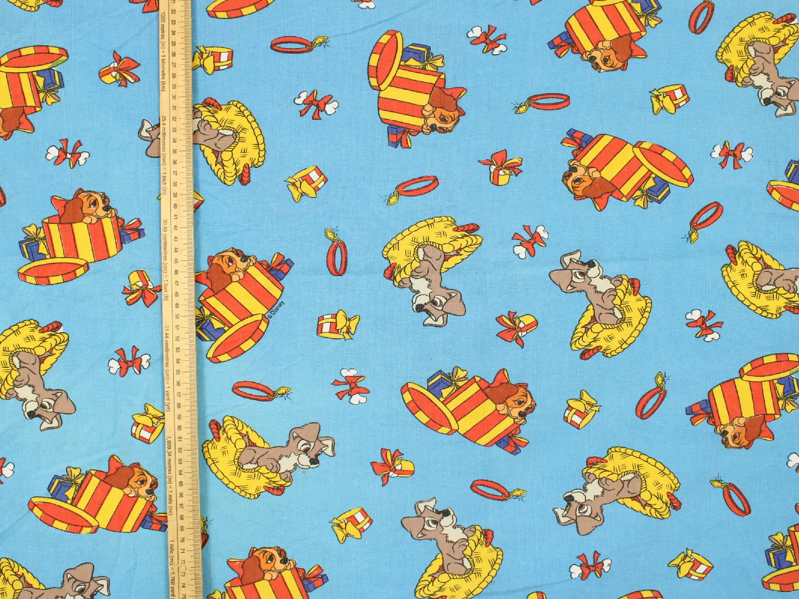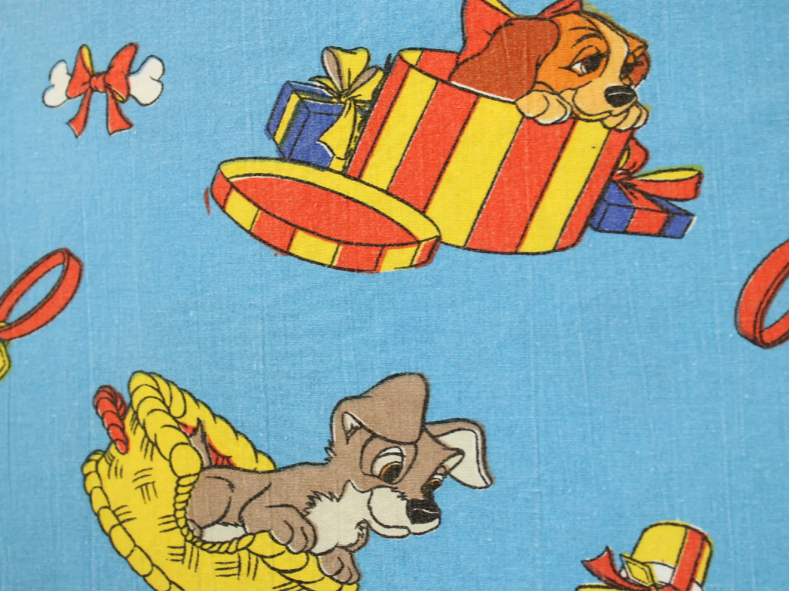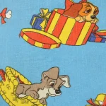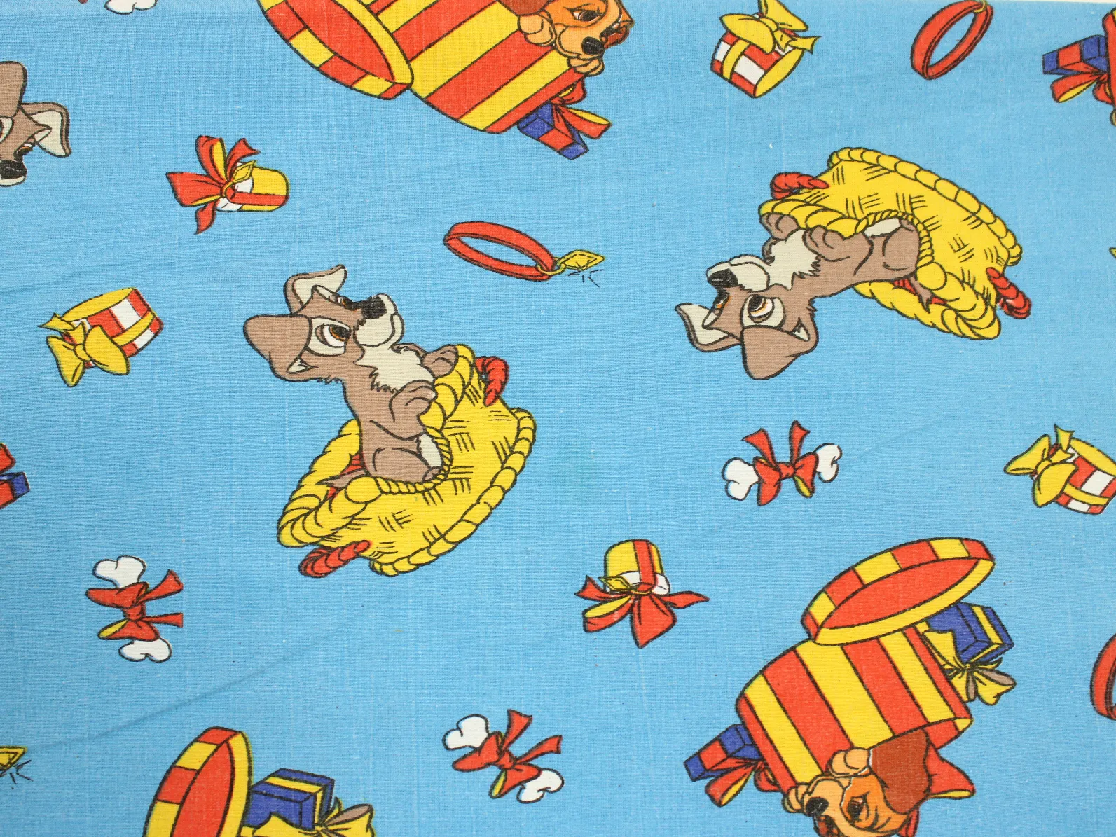 ディズニー、わんわん物語、キャラクタービンテージシーツ。解体生地。