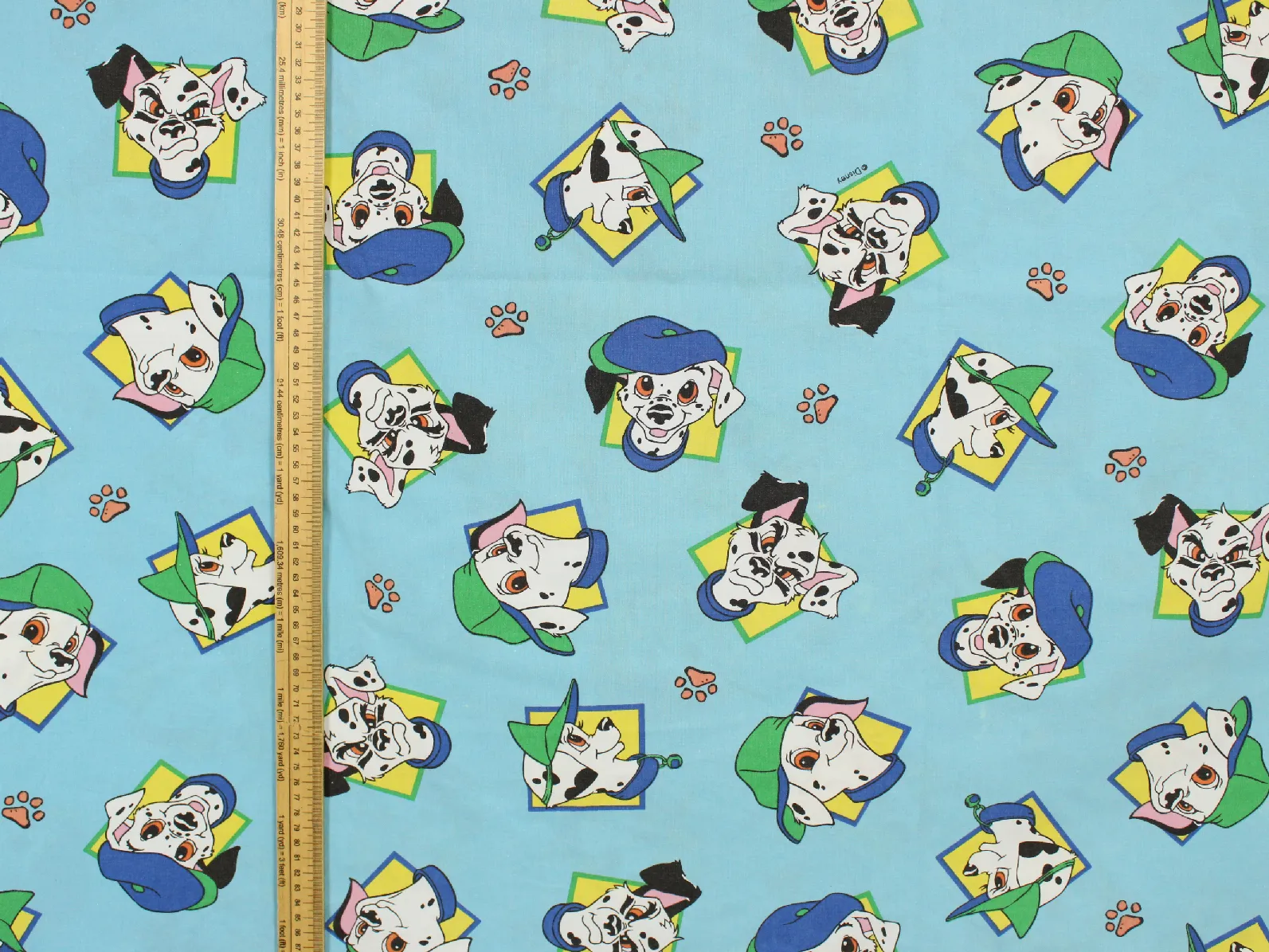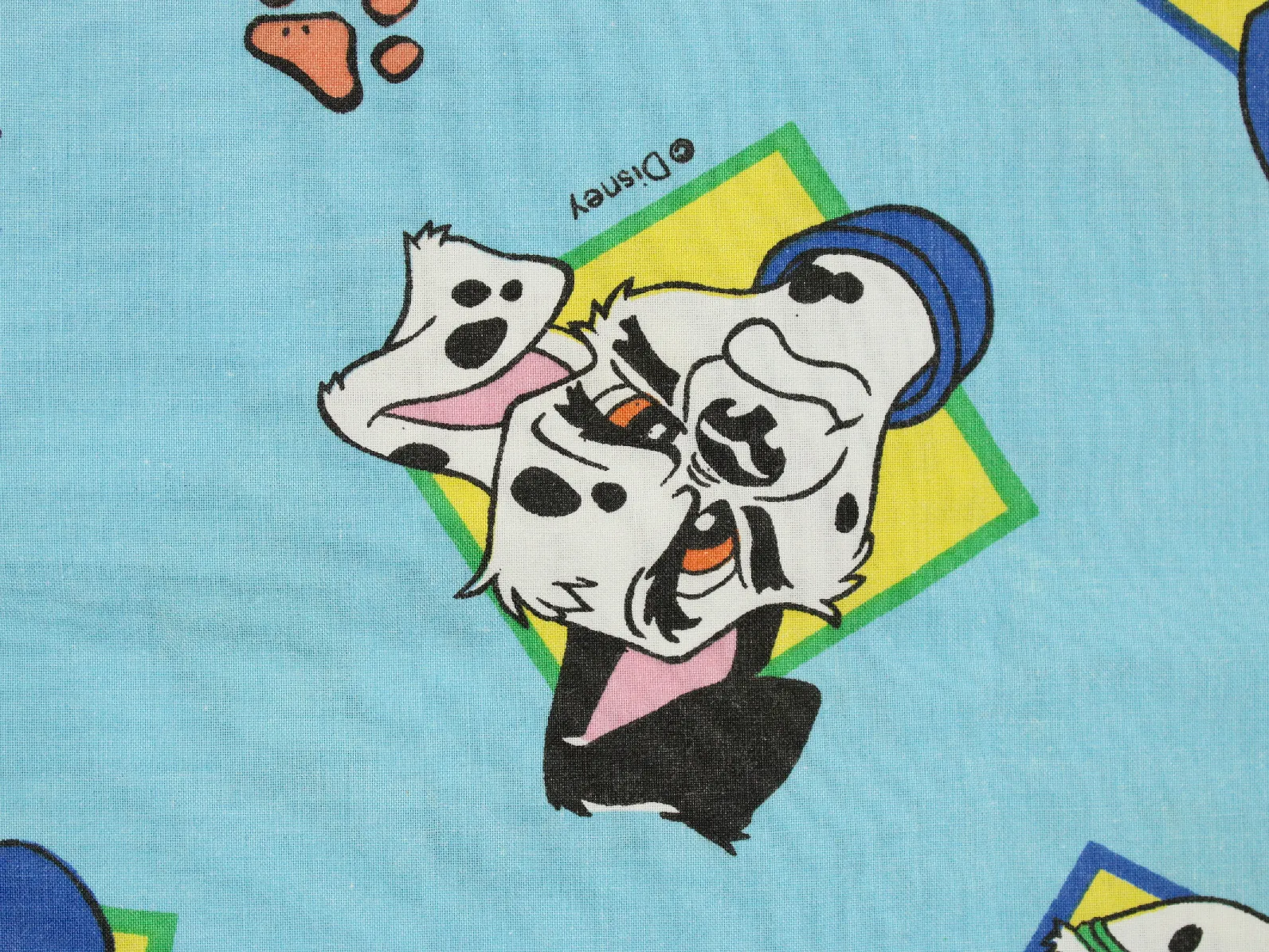 ディズニー、101匹わんちゃん、キャラクタービンテージシーツ。解体生地。