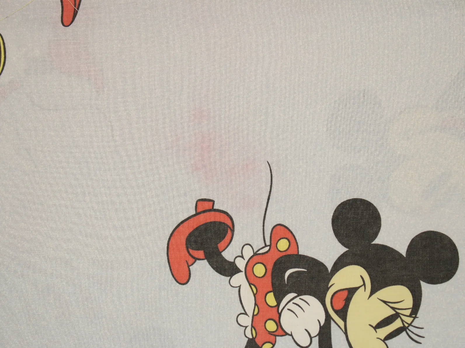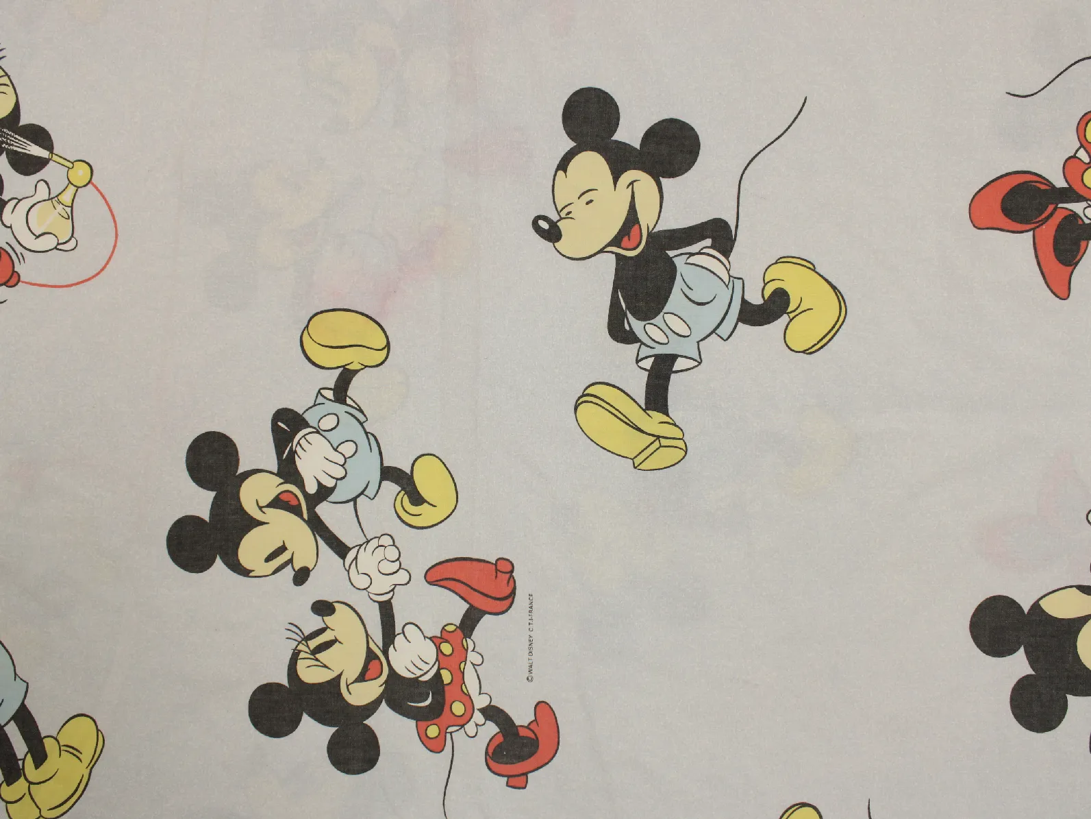 WALT DISNEY PRODUCTIONS、ミッキー、ミニー、キャラクタービンテージシーツ。解体生地。