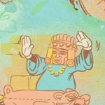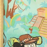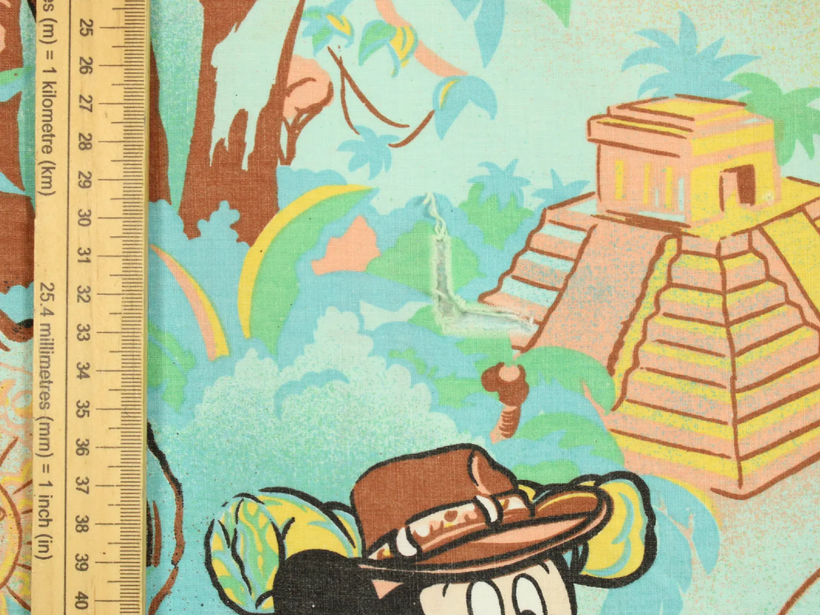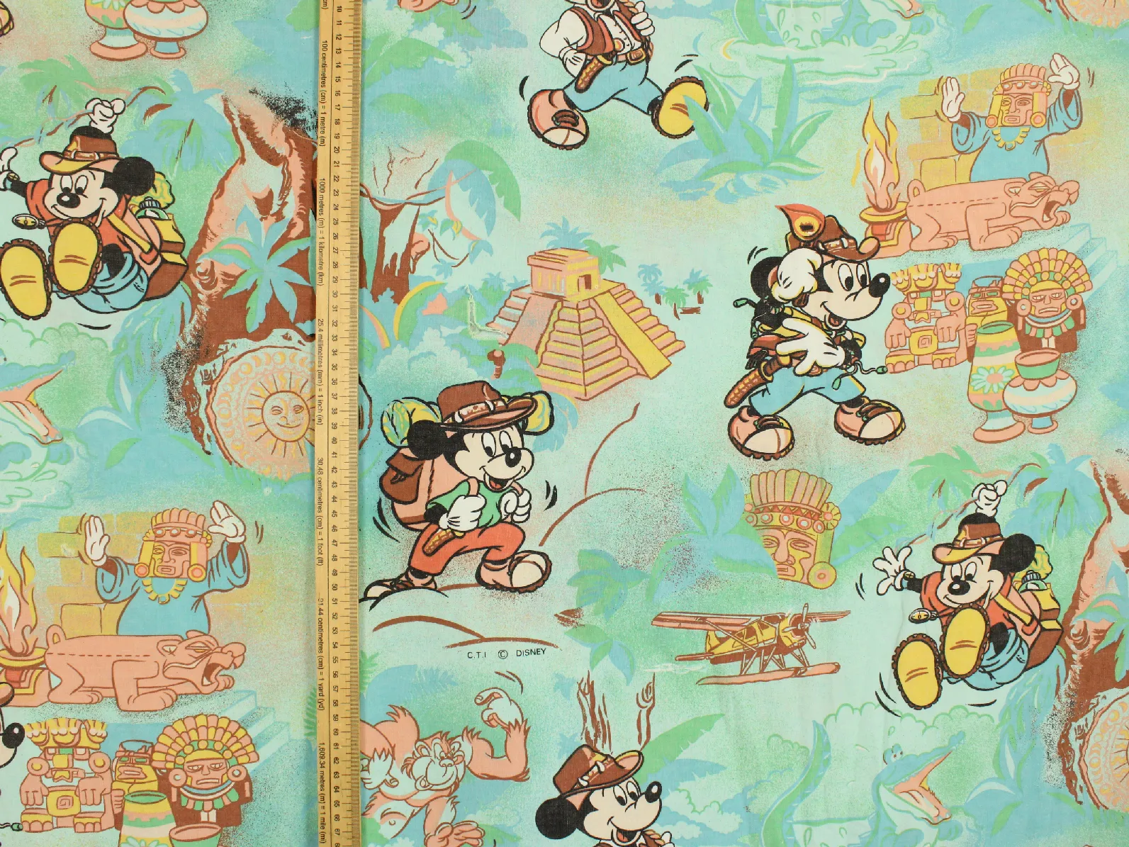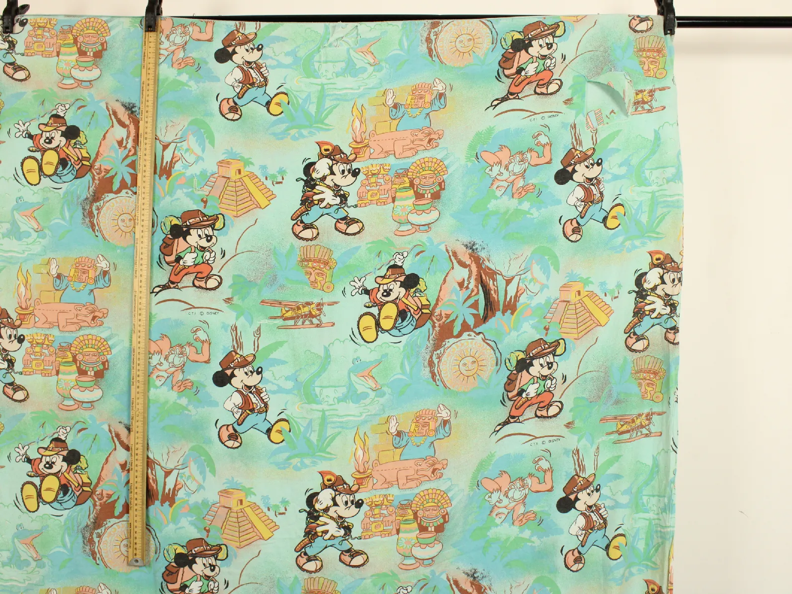 冒険家ミッキーと遺跡や動物たちの背景が楽しいデザイン。