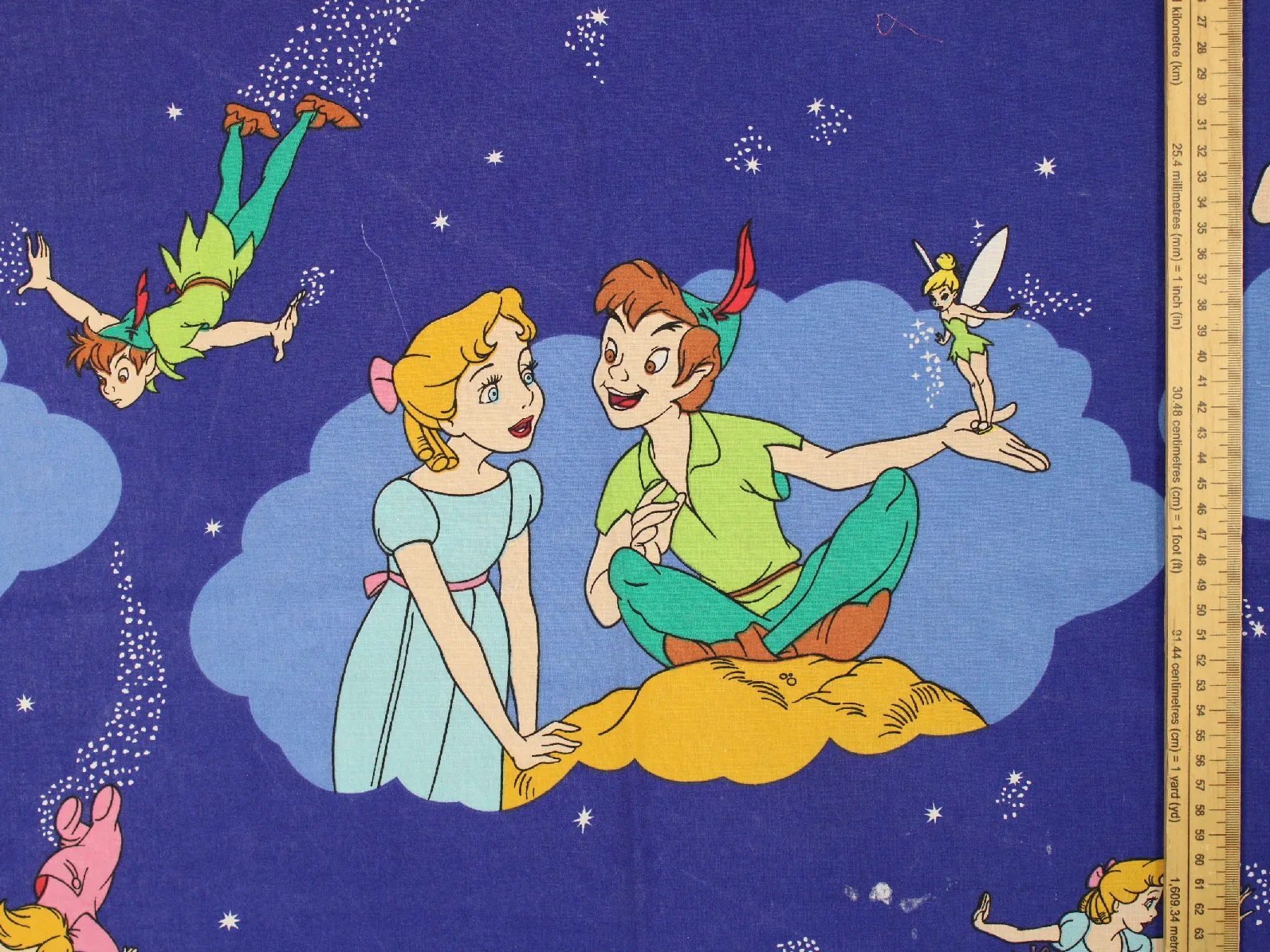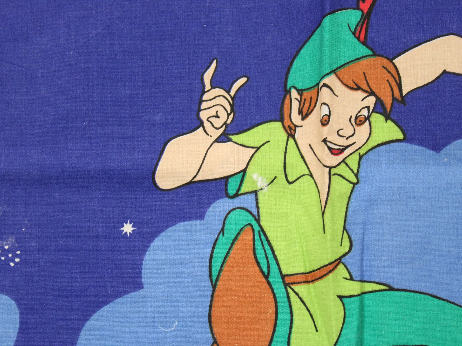 ディズニー、ピーターパン、キャラクタービンテージシーツ。解体生地。