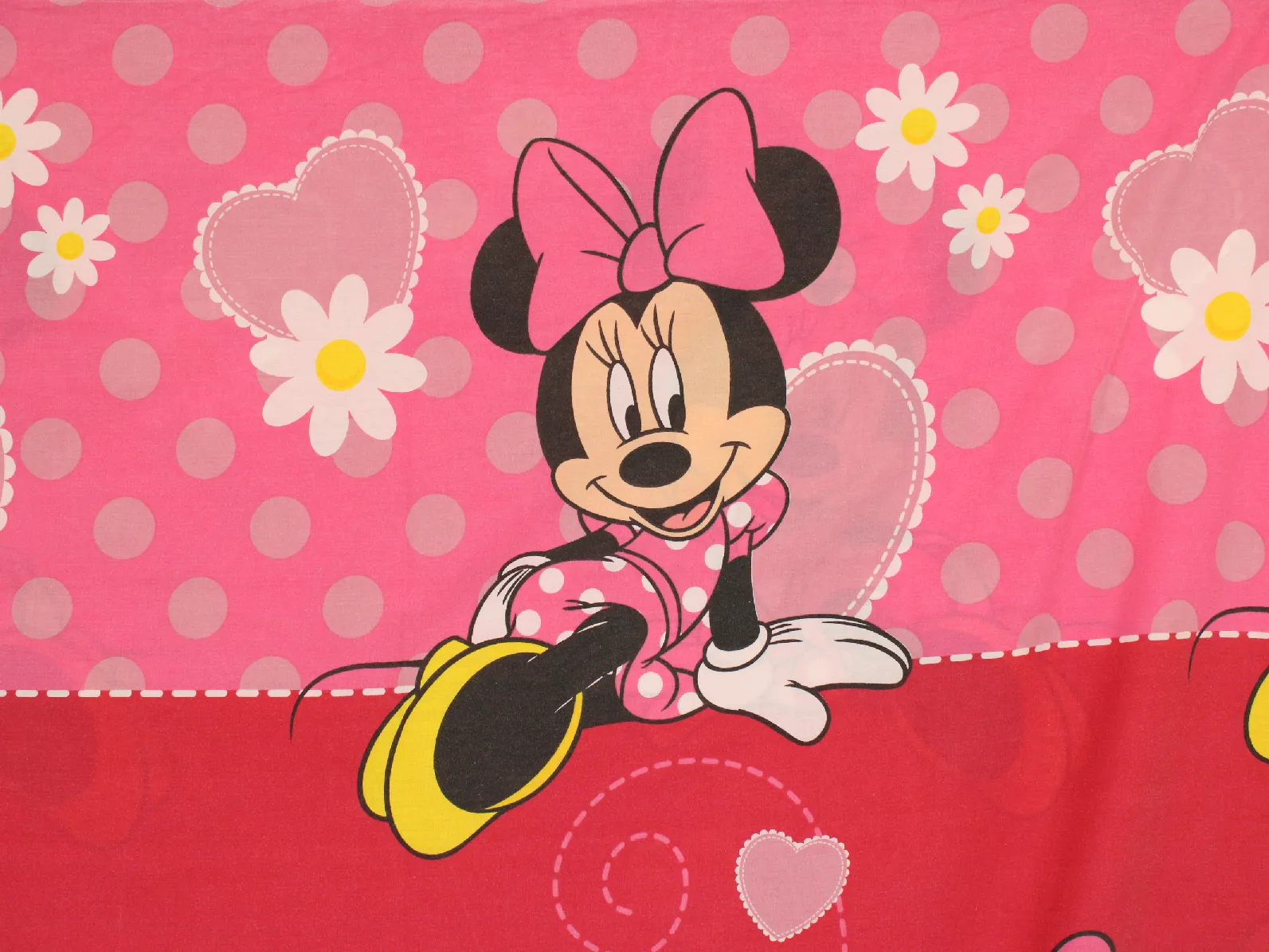 大きな絵柄のミニーのお布団カバーです。