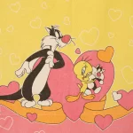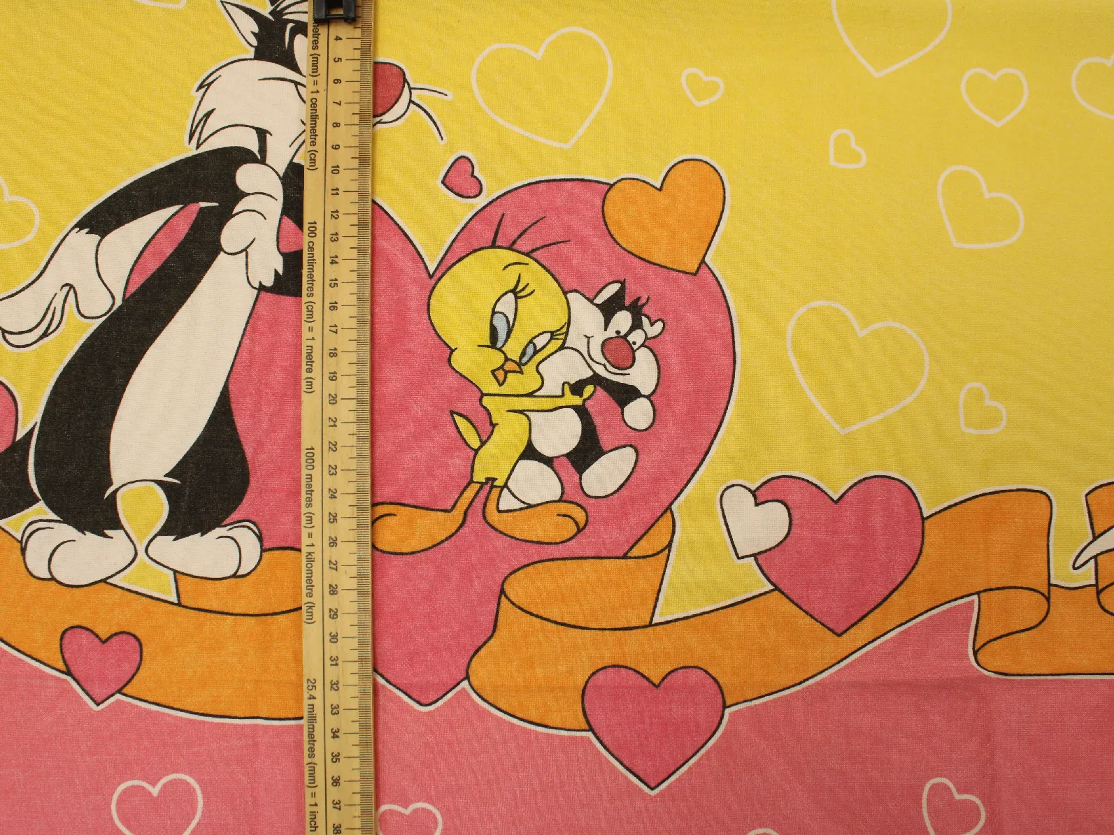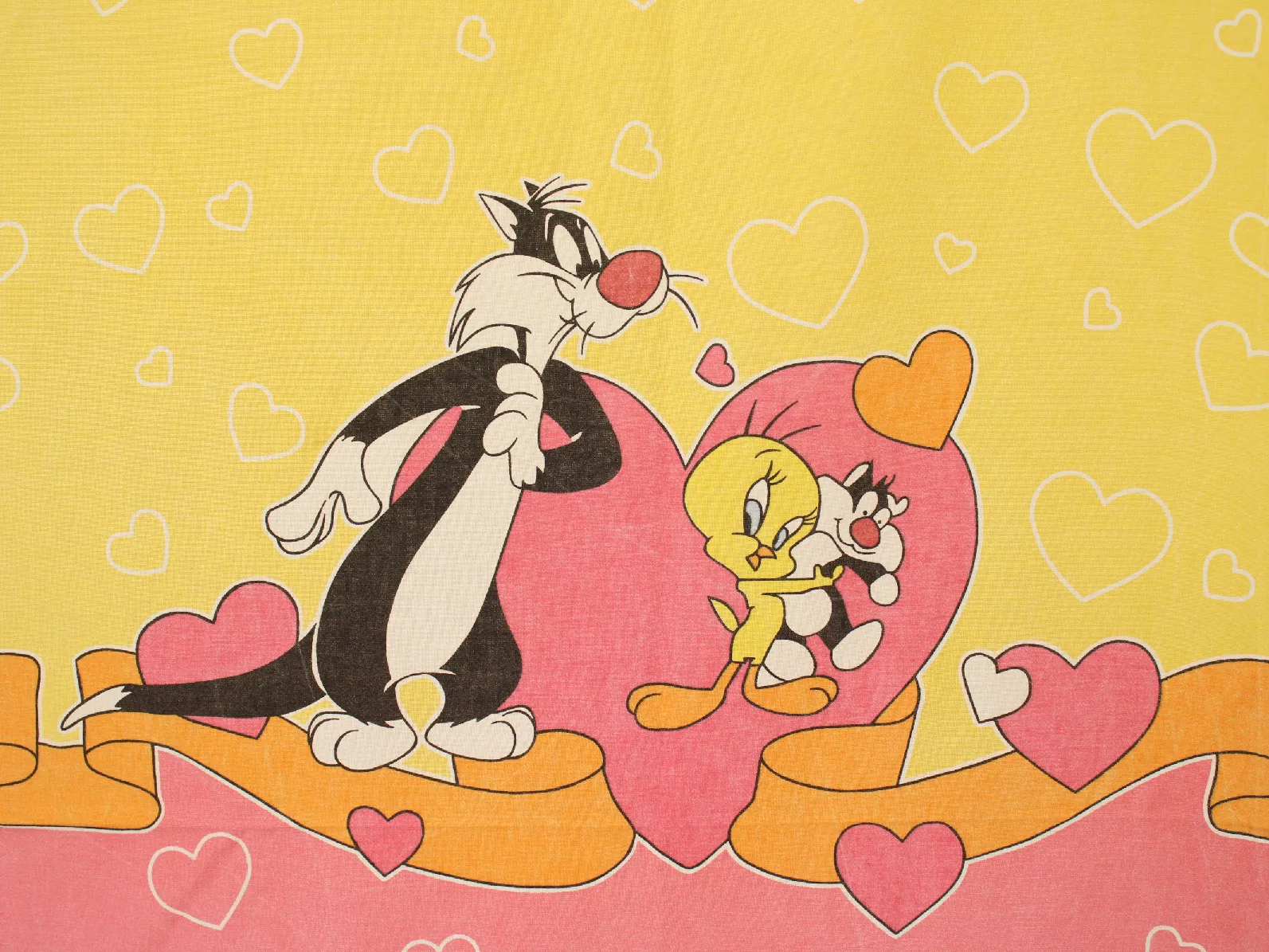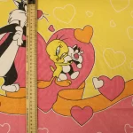ルーニー・テューンズ、シルベスター&トゥイーティー、キャラクタービンテージシーツ。解体生地。
