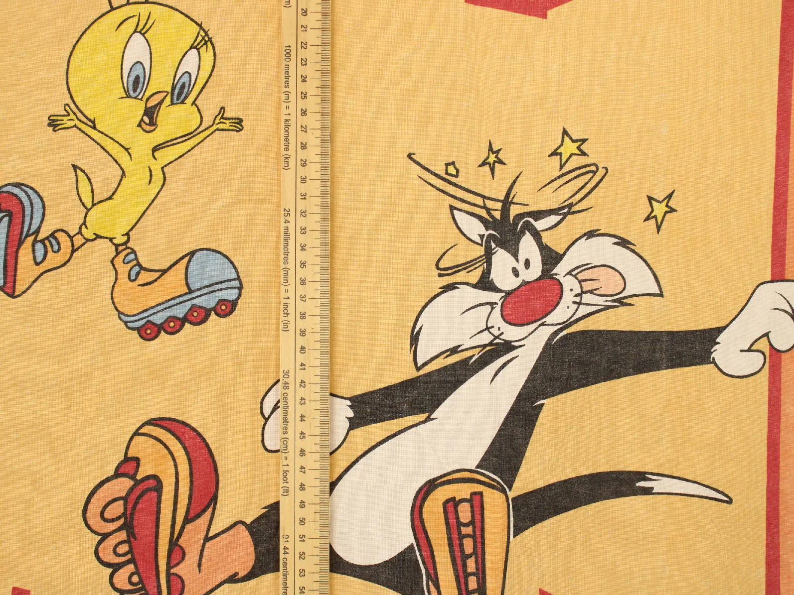 ルーニー・テューンズ、シルベスター&トゥイーティー、キャラクタービンテージシーツ。解体生地。