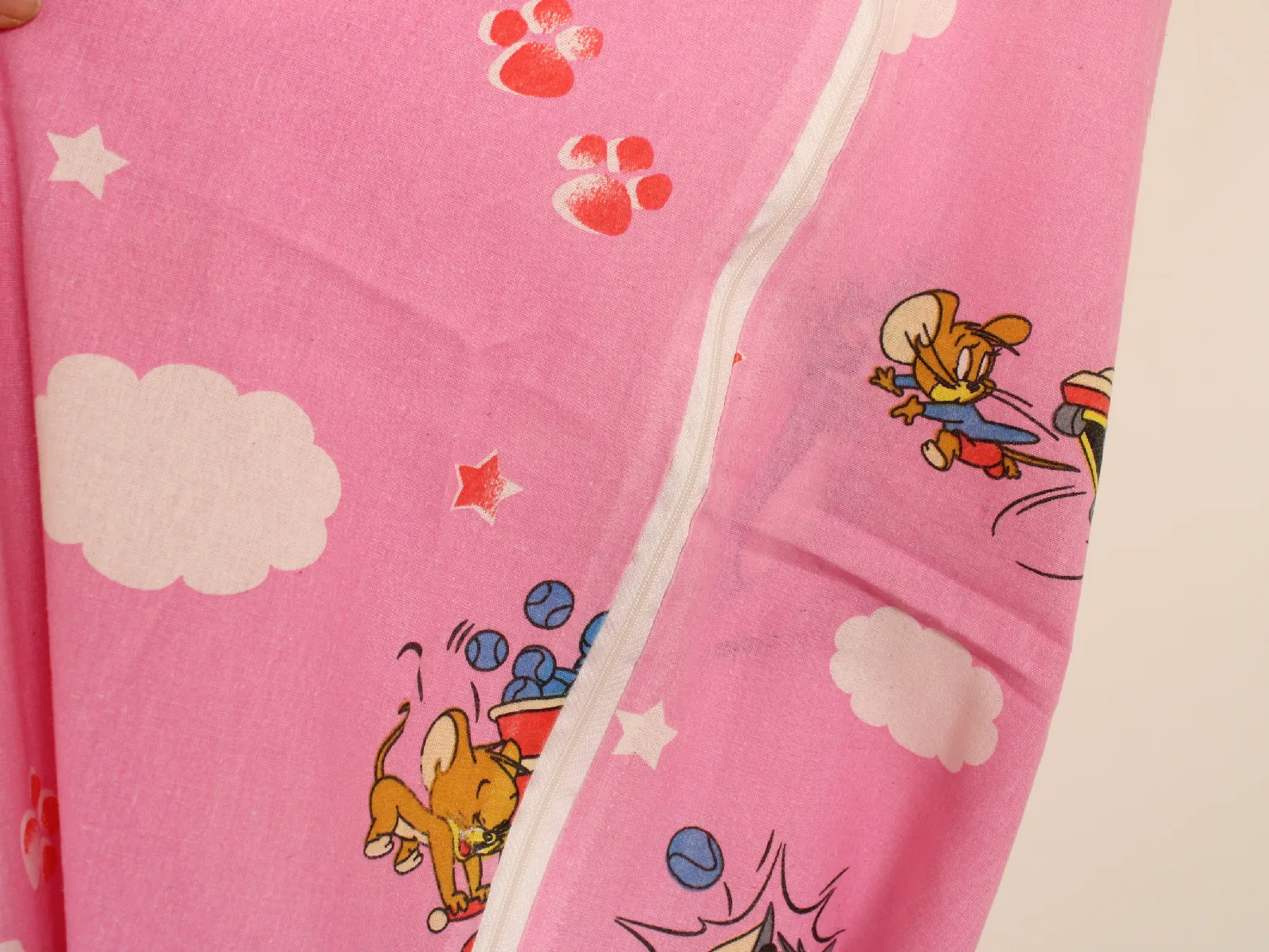 トムとジェリー、ピンク地のキッズサイズ布団カバーです。