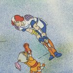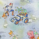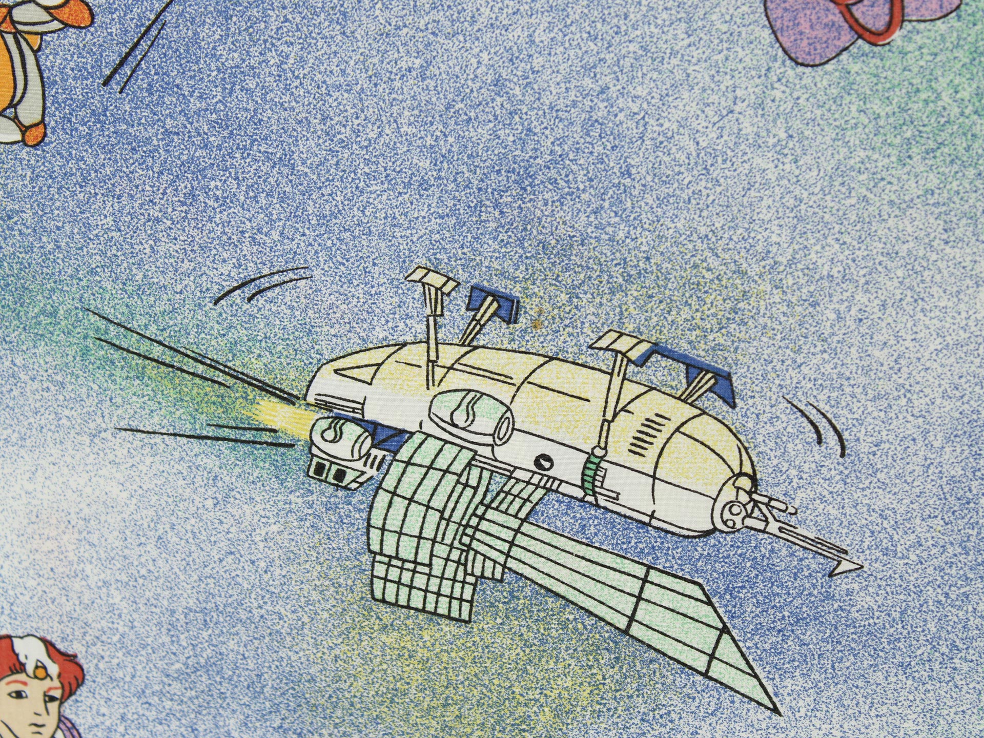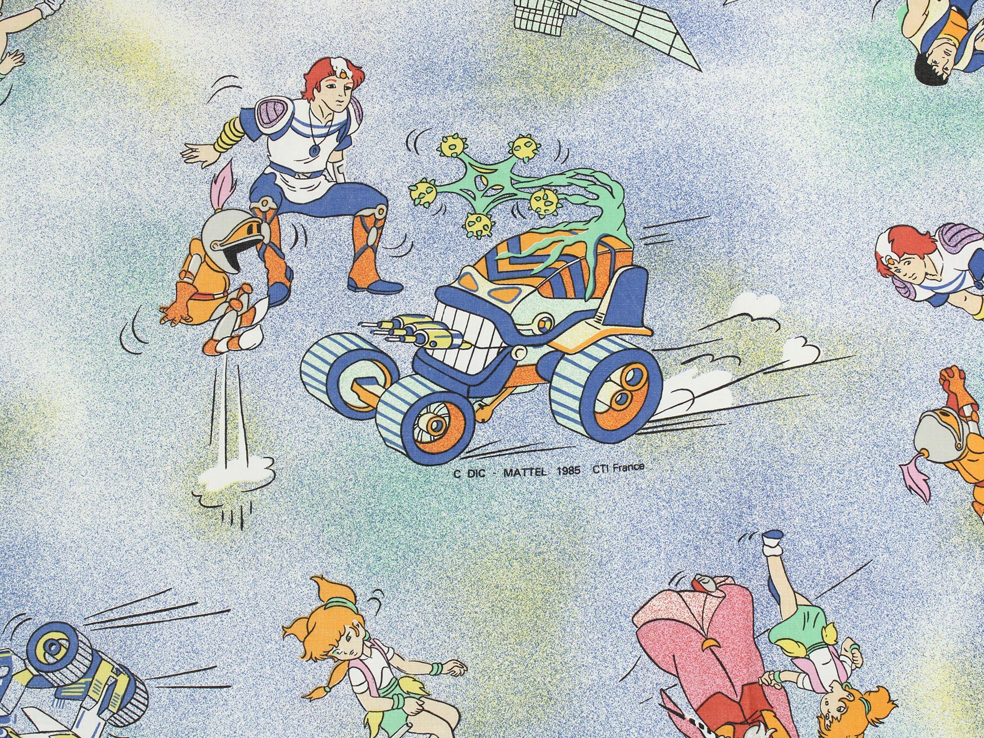 1985〜1986年に欧米で放映されたテレビアニメ。フランスCTIらしい点描のグラデーション背景、細かな描写のキャラクター達がデザインされたフラットシーツです。