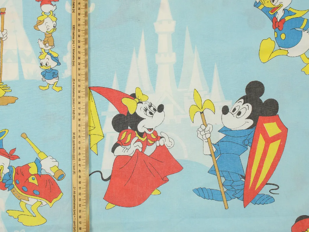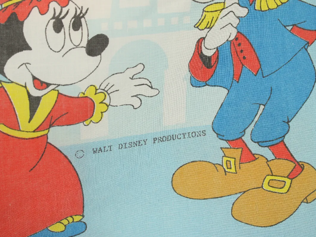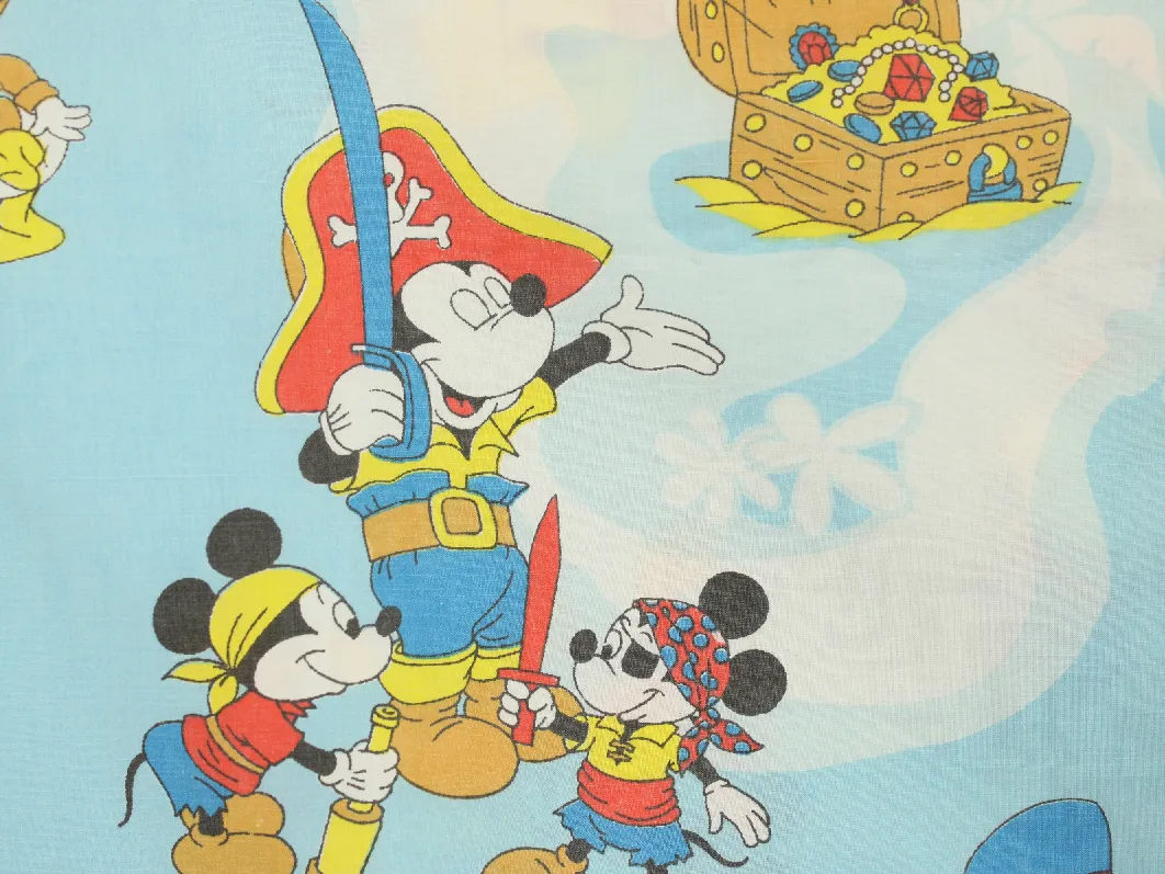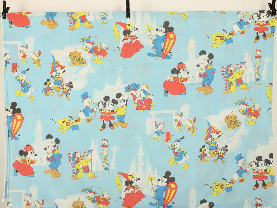 WALT DISNEY PRODUCTIONS、ミッキー、キャラクタービンテージシーツ。解体生地