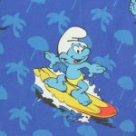 スマーフ&スマーフェット、サーフィン柄のお布団カバー&ピローカバーのベッドセットです。お布団カバー、ピローカバーともに片面が大きな絵柄、もう片面が中柄の裏表別柄です。やや厚手のしっかりとした生地です。