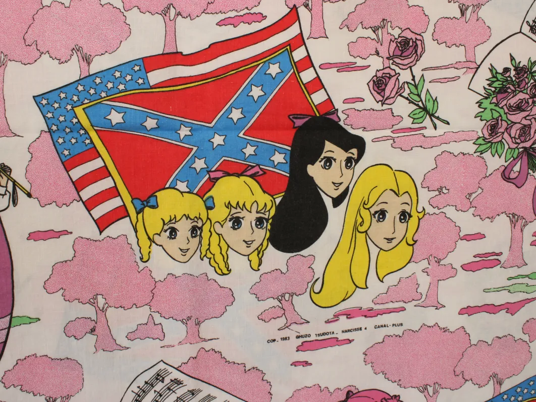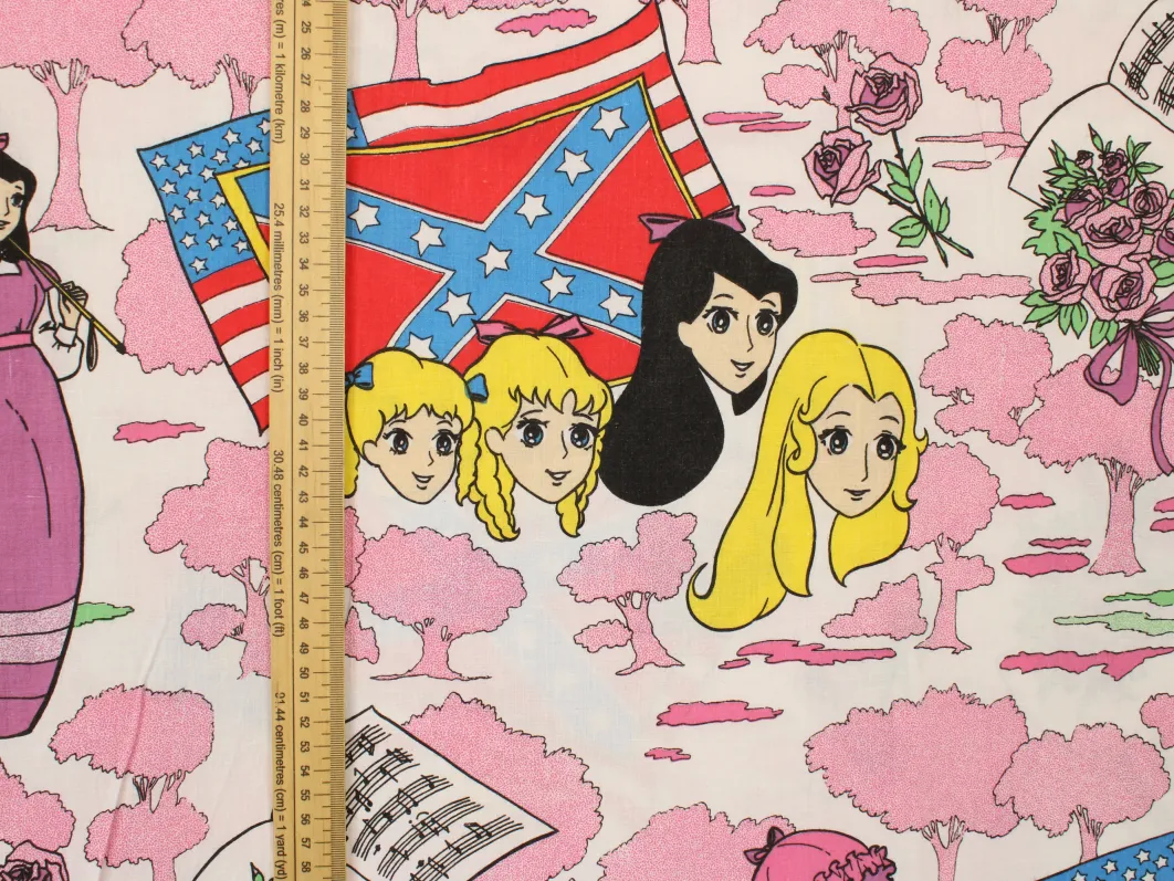 80年代アニメ「若草の四姉妹」(原題:Little Women/若草物語)、キャラクタービンテージシーツ。解体生地。