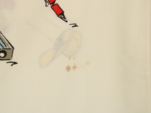 中古品。色落ちはほとんど感じられず生地も良い状態です。お布団カバーの上部(画像1枚め右)に黄ばみがあります。数カ所に薄い汚れがあります。