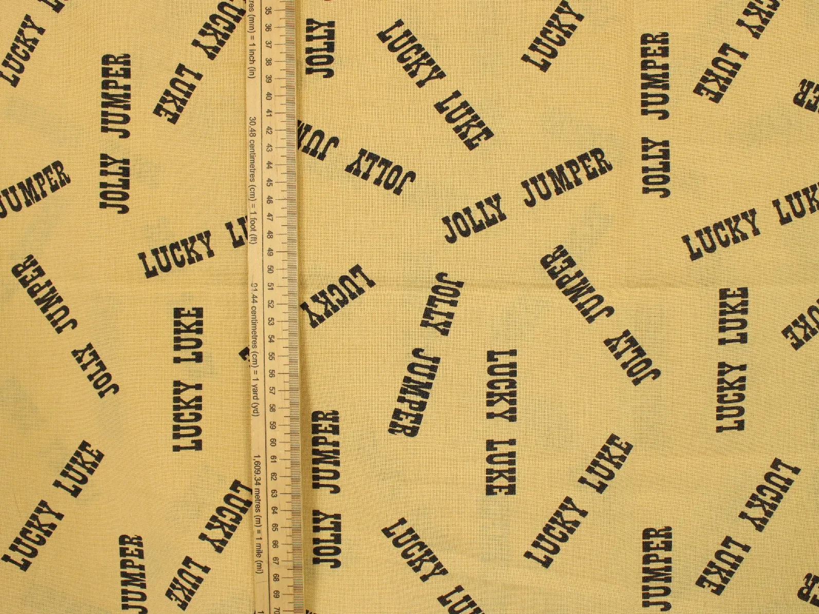 黄色地に黒のシンプルな、LUCKY LUKE ロゴ柄。