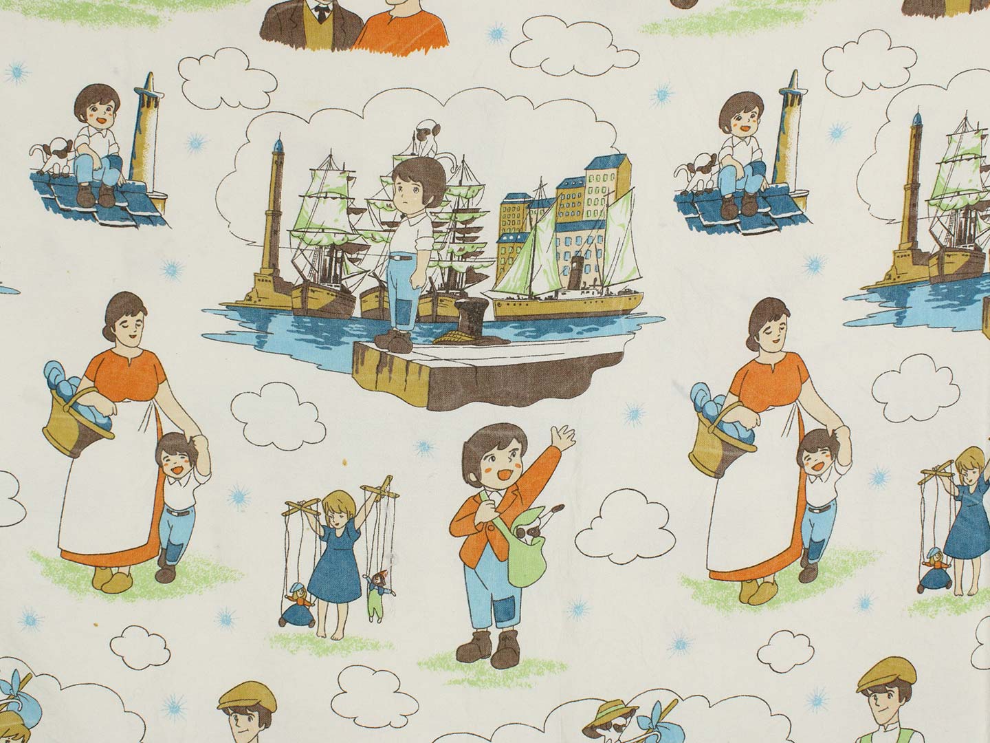 母をたずねて三千里(Marco )、キャラクタービンテージシーツ(ベッドカバー)。70年代、スペイン。