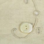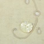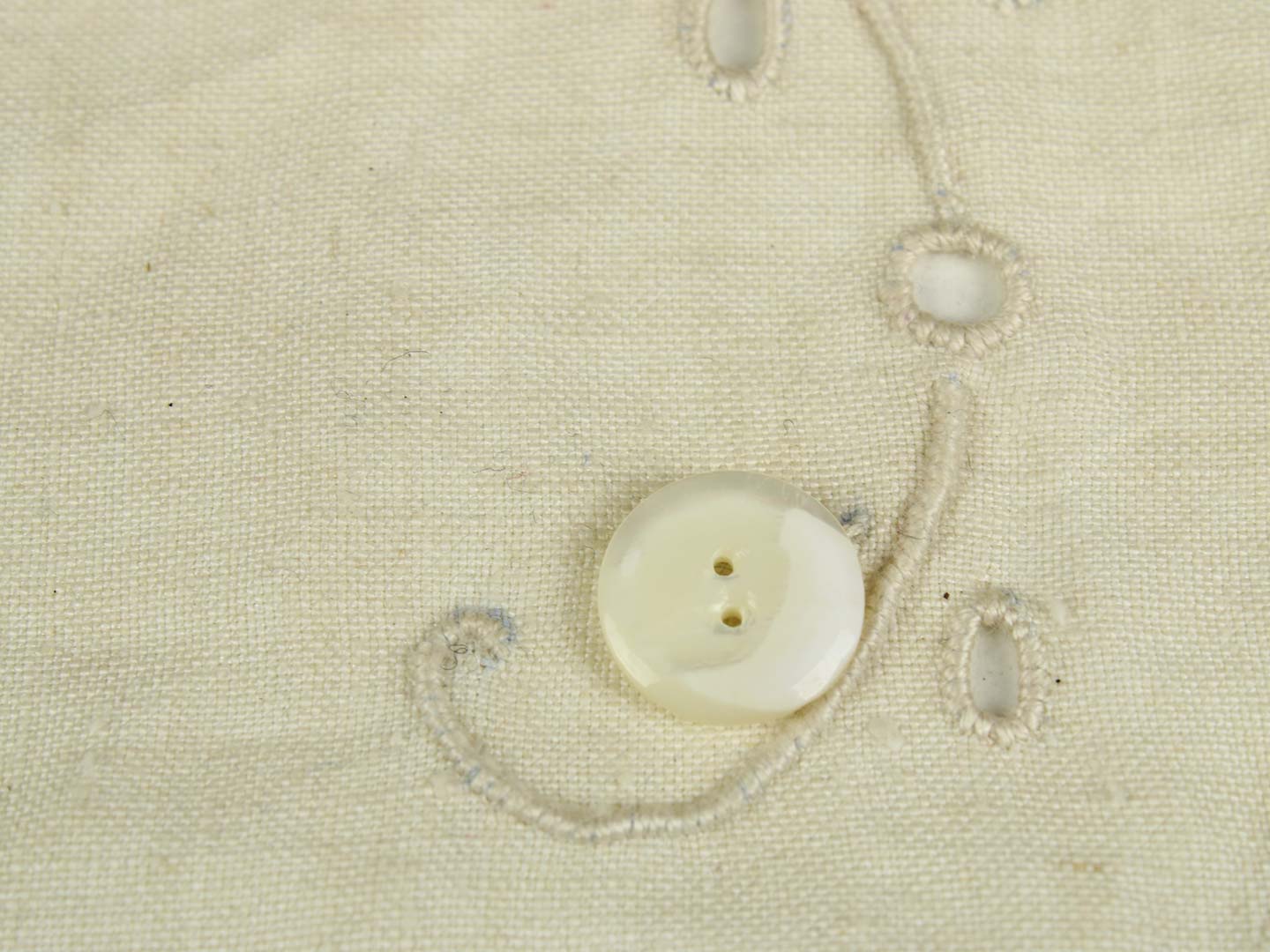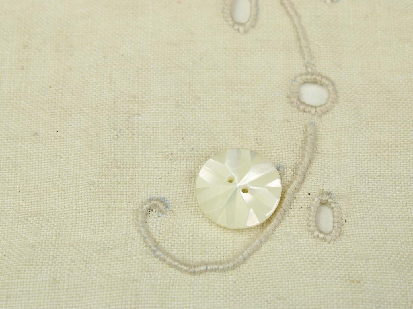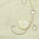 花のような美しい彫り模様の入った、円形の2つ穴シェルボタンです。柔らかな白い光沢。