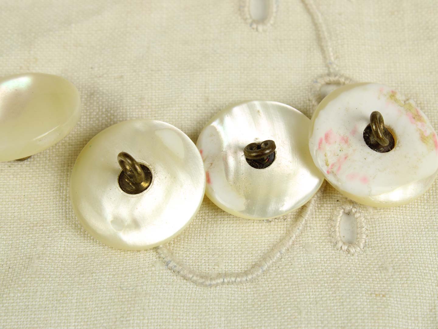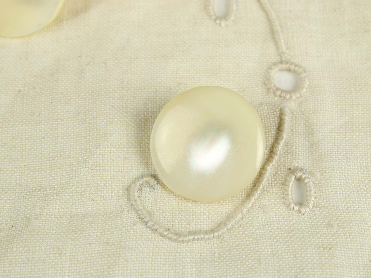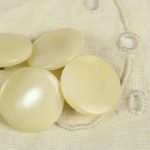 丸みを帯びた円形の足つきシェルボタンです。柔らかな光沢。