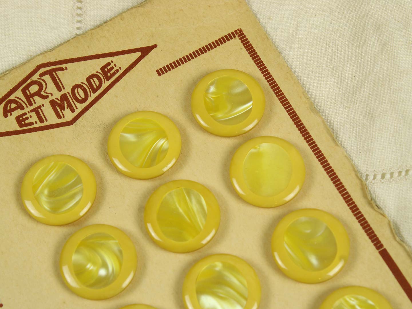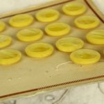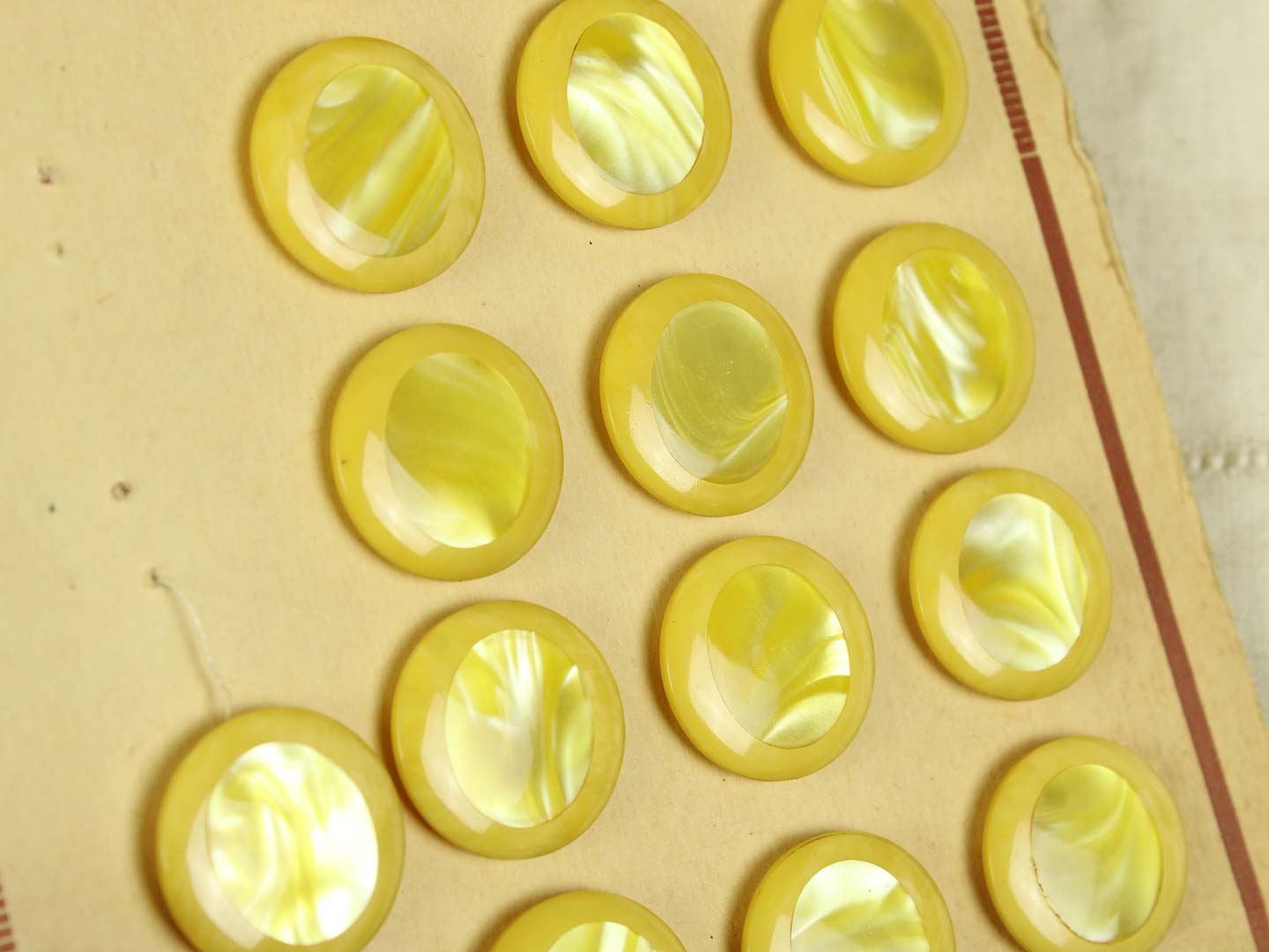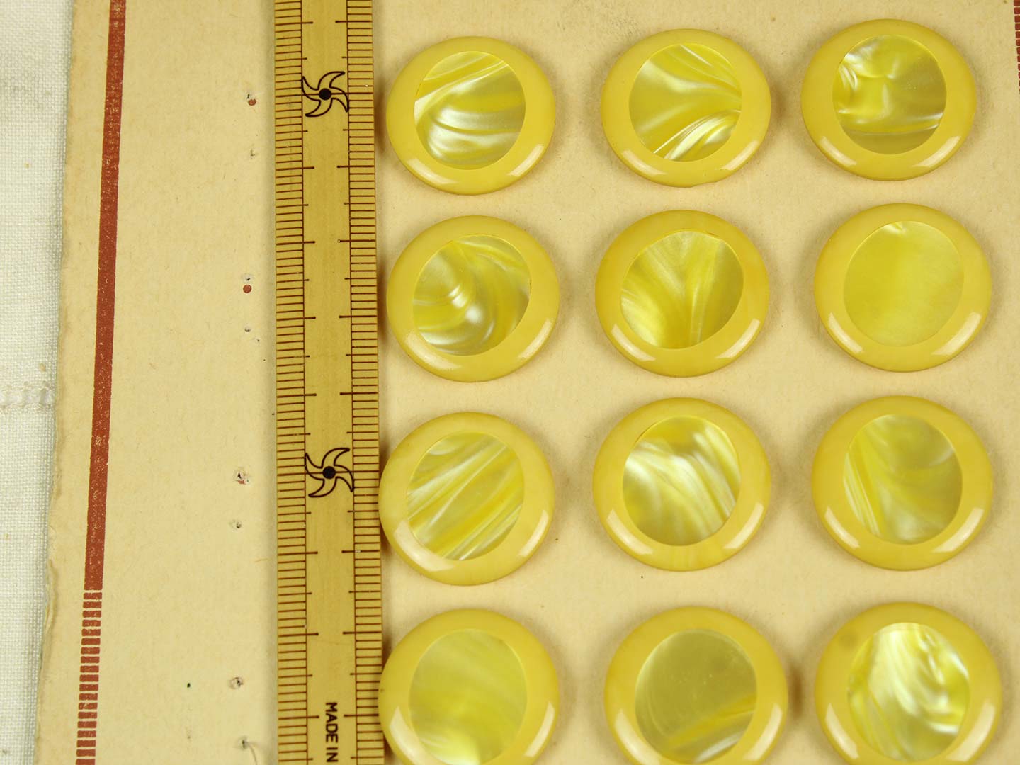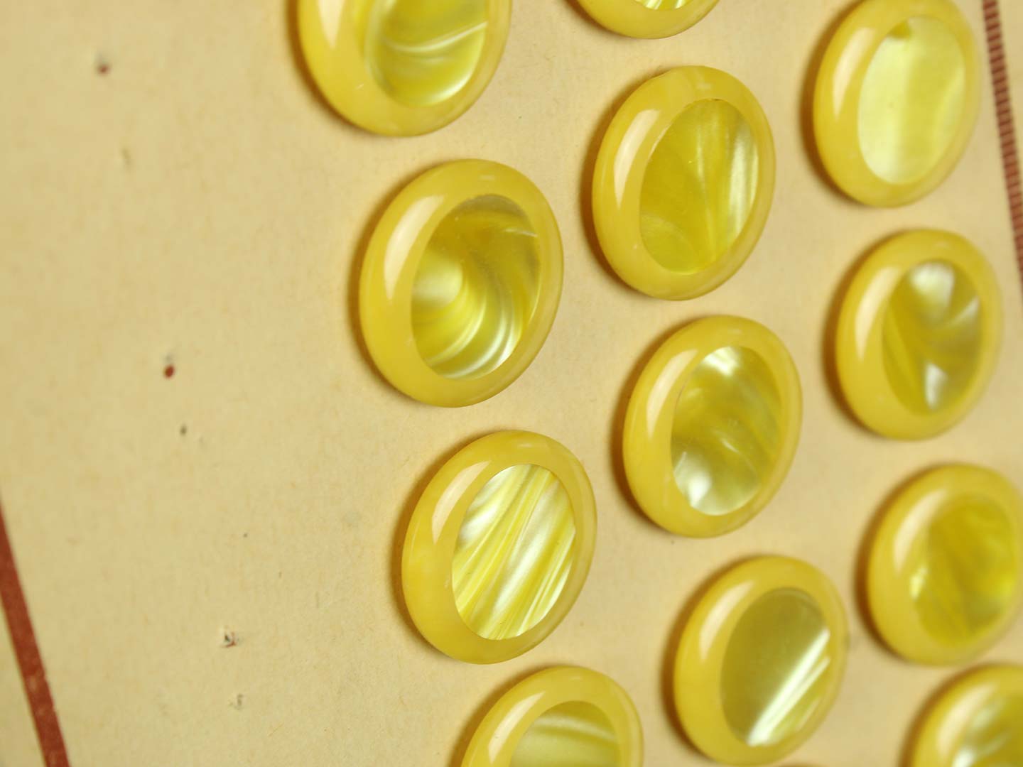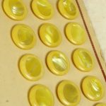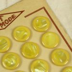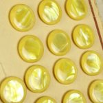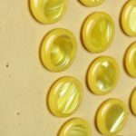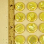 黄色と白のマーブル模様。中心部分にイミテーションシェルが埋め込まれた個性的なボタンです。