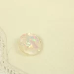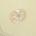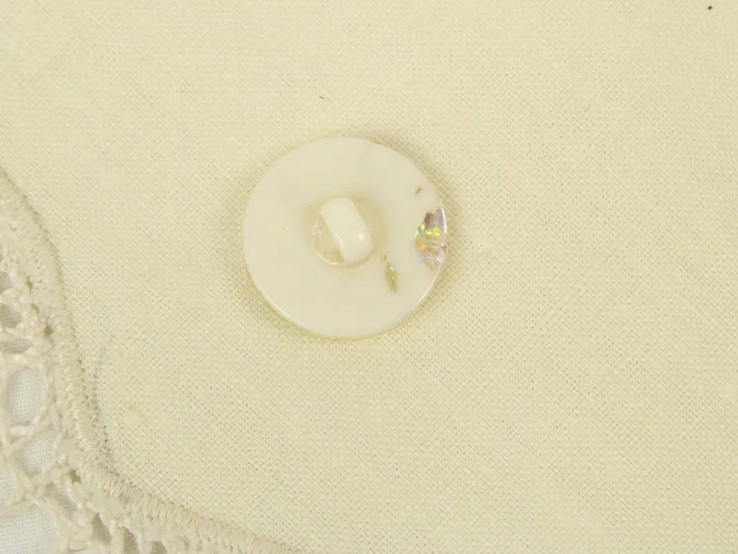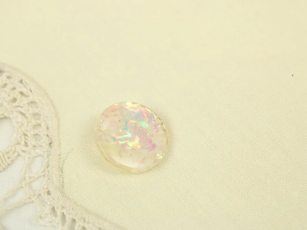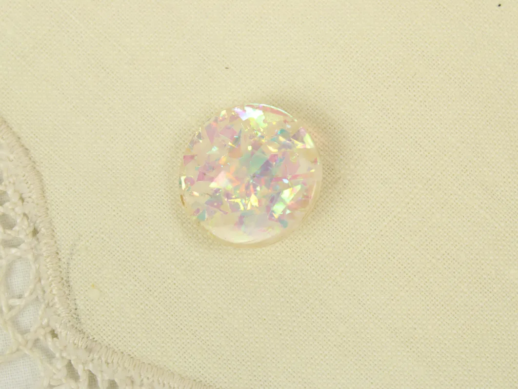 虹色の光沢のラメが入った、白い足つきボタンです。