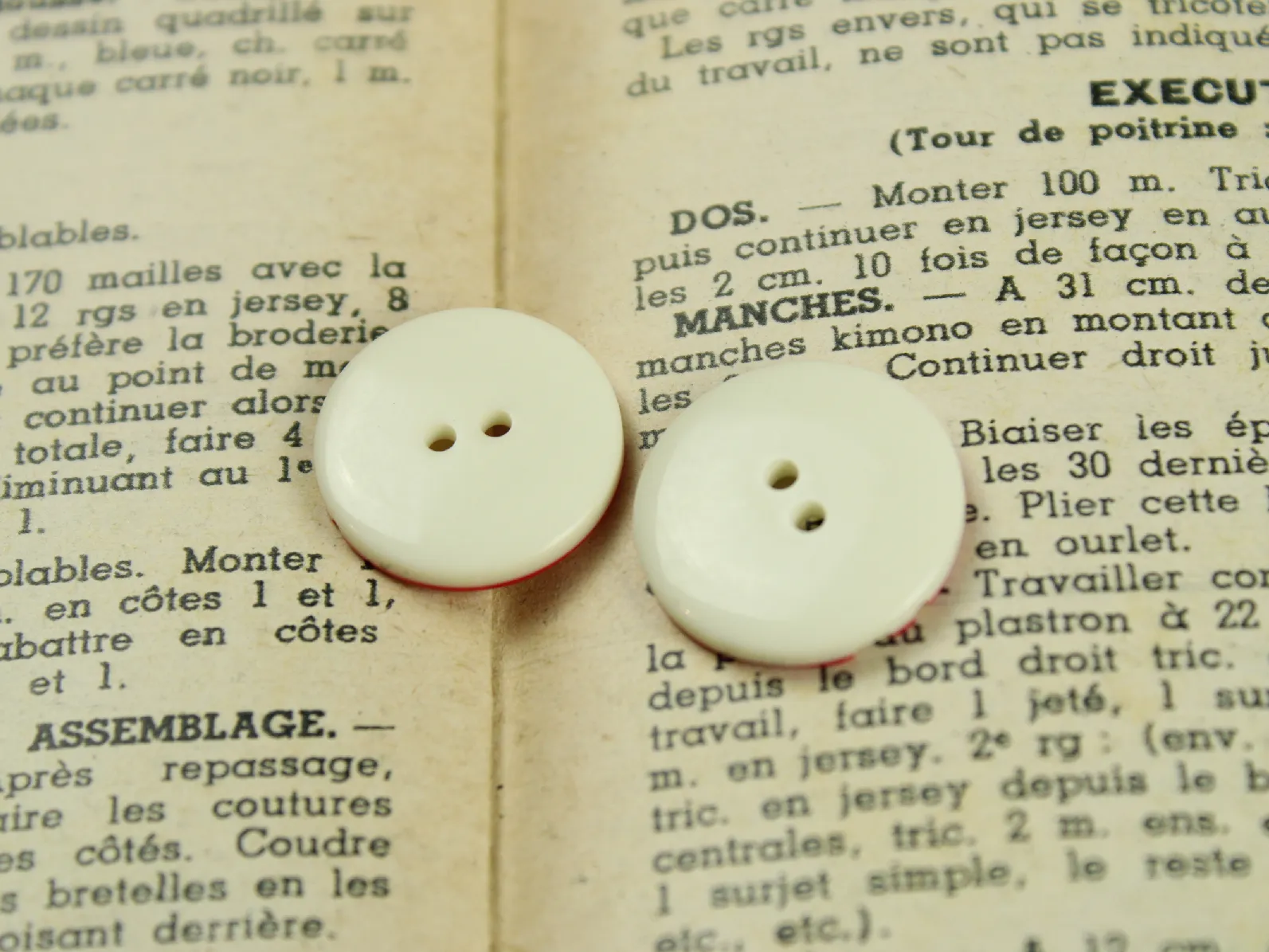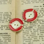 白いボタンに赤色のストライプラインが入ったボタン。