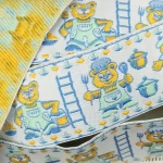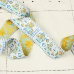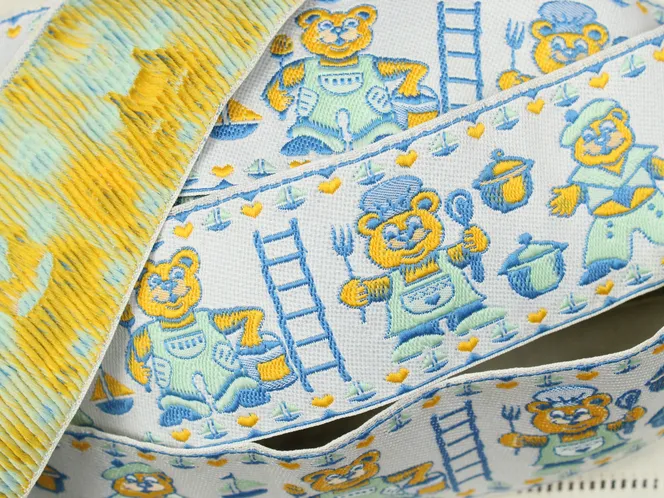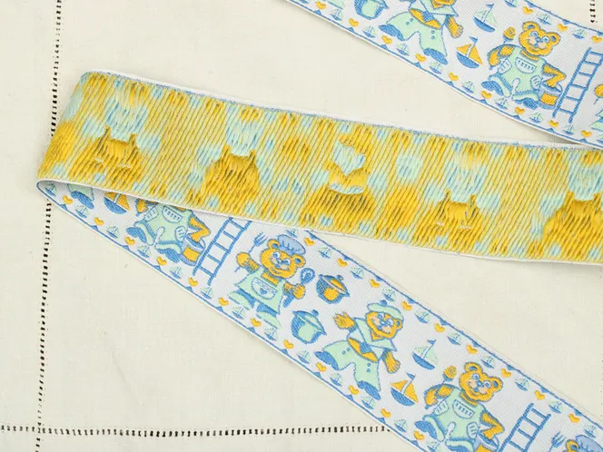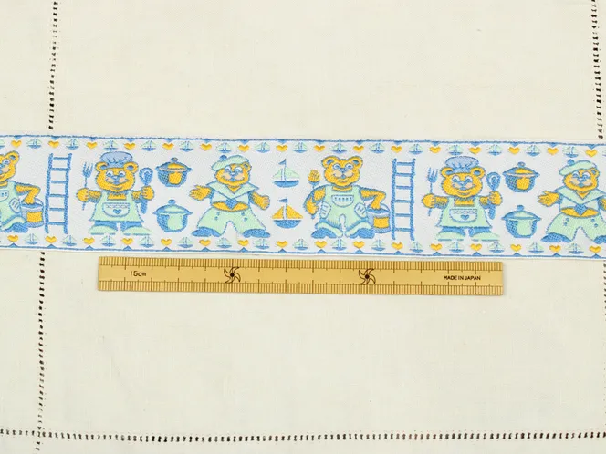 おどけた表情のクマさん柄刺繍リボン。