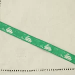 緑地に白いウサギと野原モチーフ。
