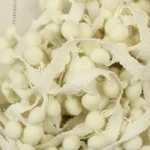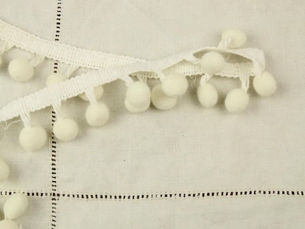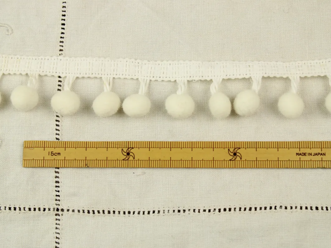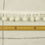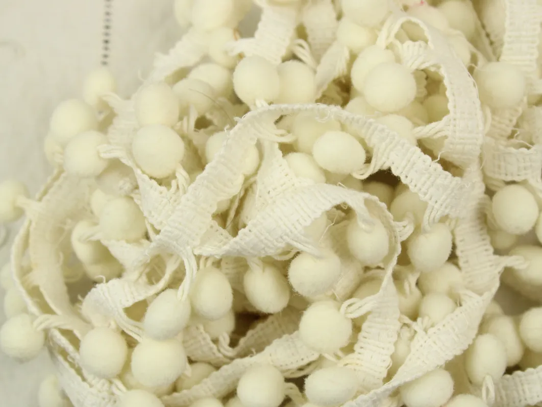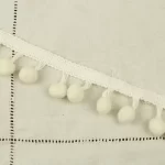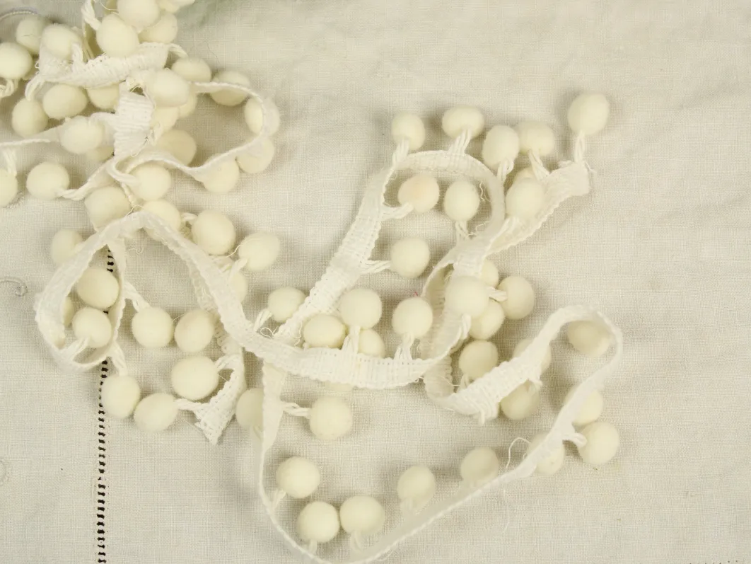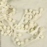 存在感ある大きめのポンポンがついた、白いリボンです。