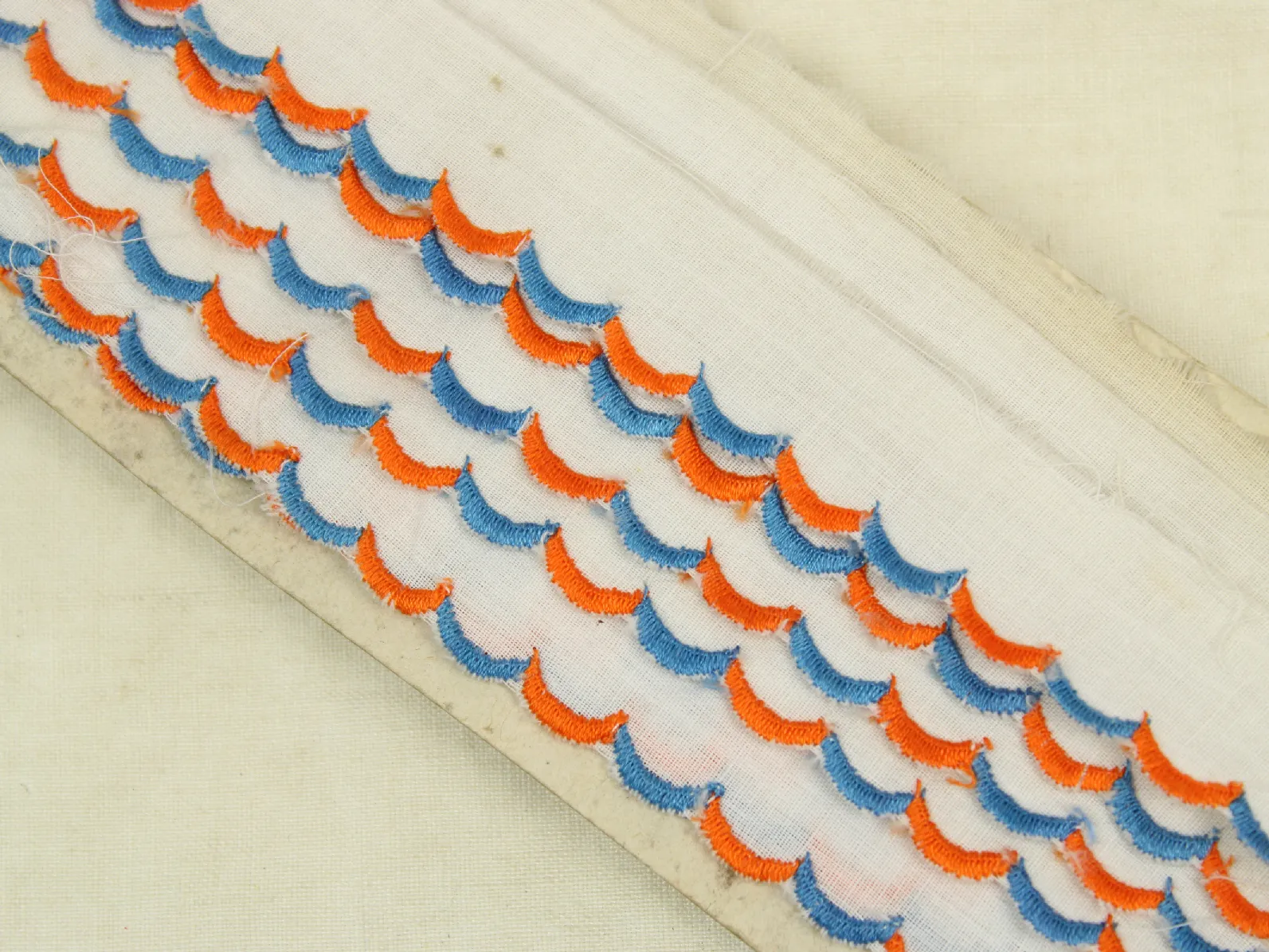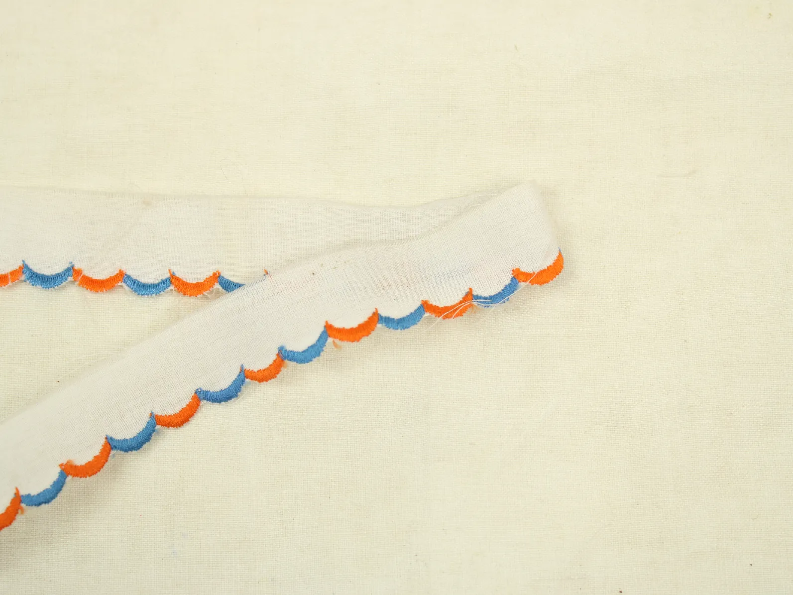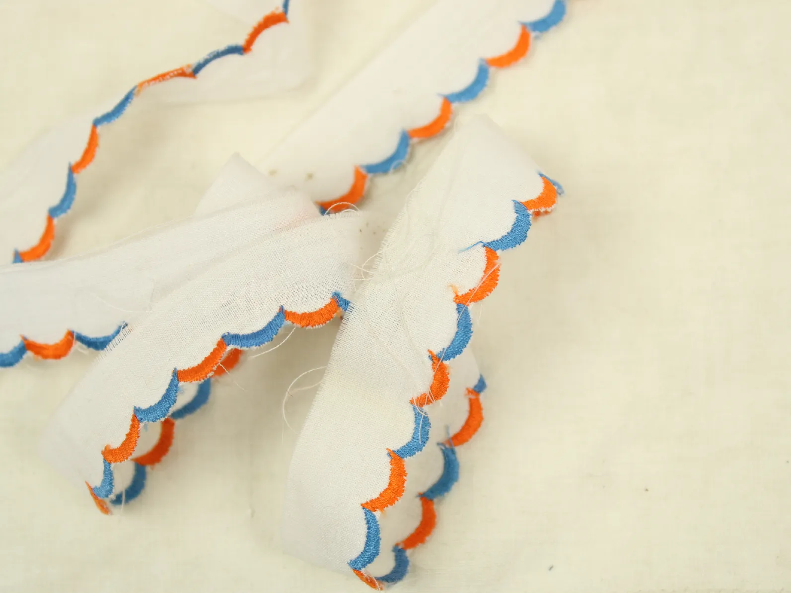 スカラップ刺繍の入った薄手の白いリボンです。
