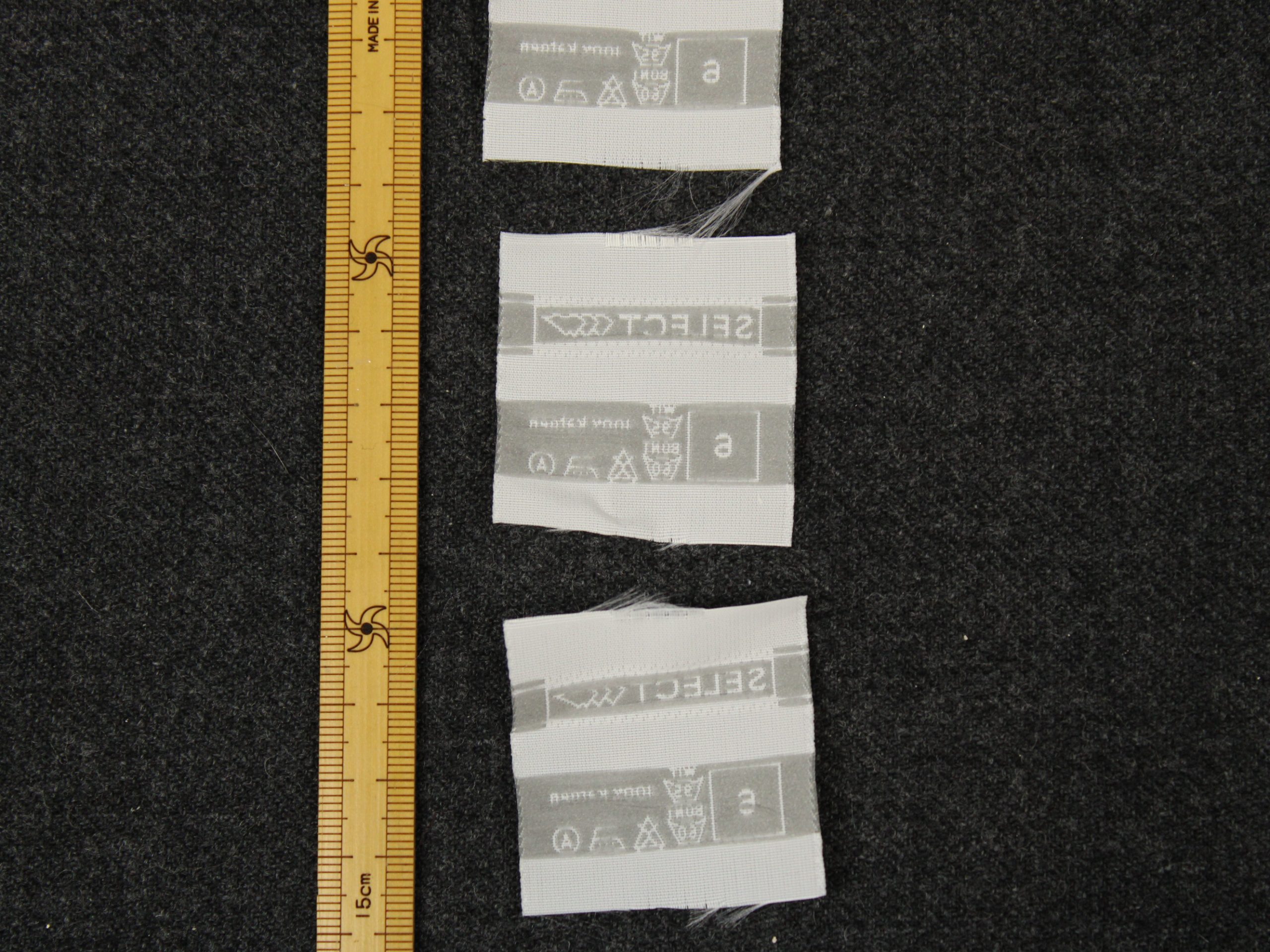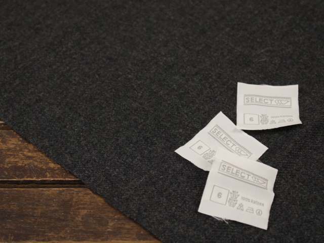 オランダ語表記の洋服等の品質表示タグです。刺繍タグ。縁を折る等の処理はせず、カットしただけの状態でお届けします。