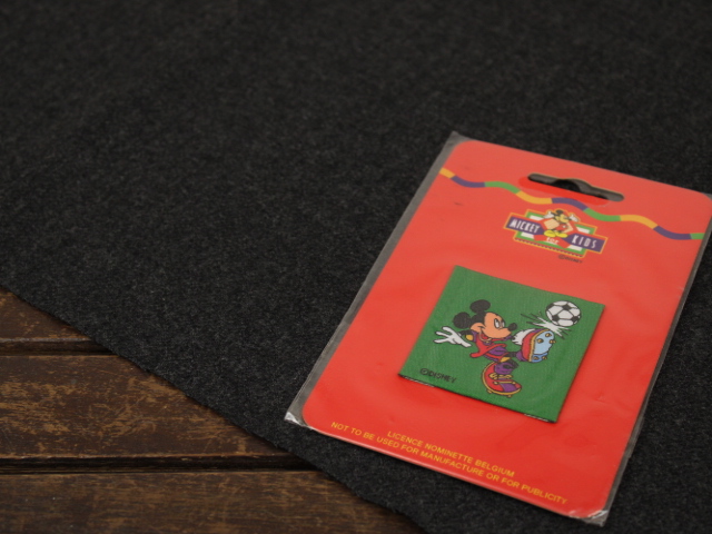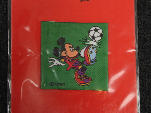 ディズニー、ミッキーのサッカー柄、ヴィンテージ刺繍ワッペン。左右端の折られた刺繍ワッペン、縫い付けるタイプです。