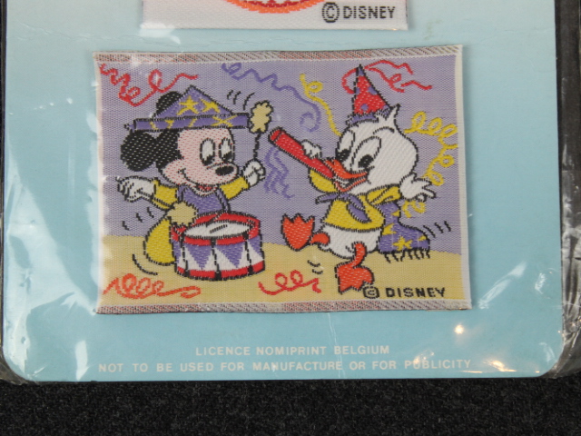 ベビーミッキー&ドナルドのパーティ柄 約 7㎝ x 5㎝(両端を折られた状態のワッペンのサイズです)
