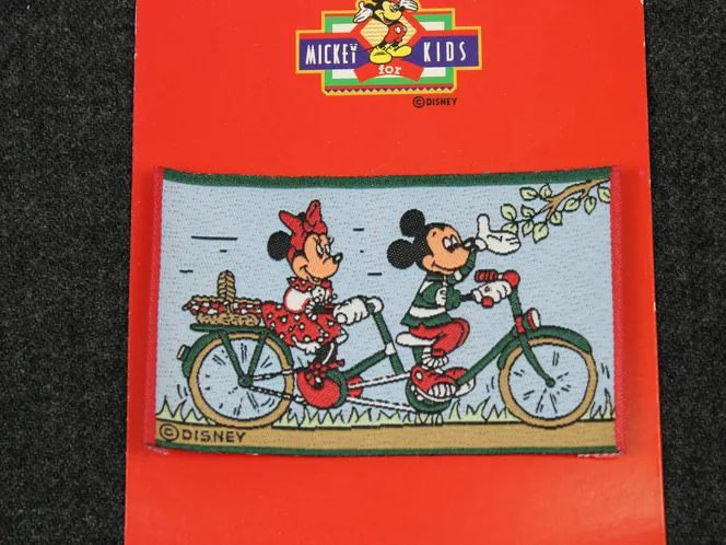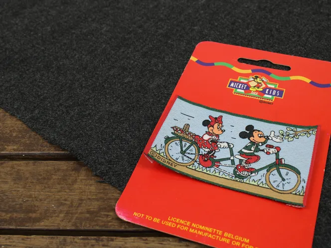 ディズニー、ミッキー&ミニー、ヴィンテージ刺繍ワッペン。左右端の折られた刺繍ワッペン、縫い付けるタイプです。