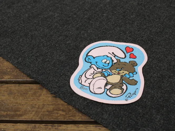 スマーフ(Smurf / Schtroumpf)、スマーフとテディベアの刺繍ワッペン。アイロン接着タイプです。
