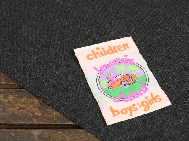 ヴィンテージ、イラスト&ロゴ刺繍タグです。