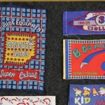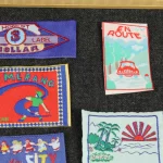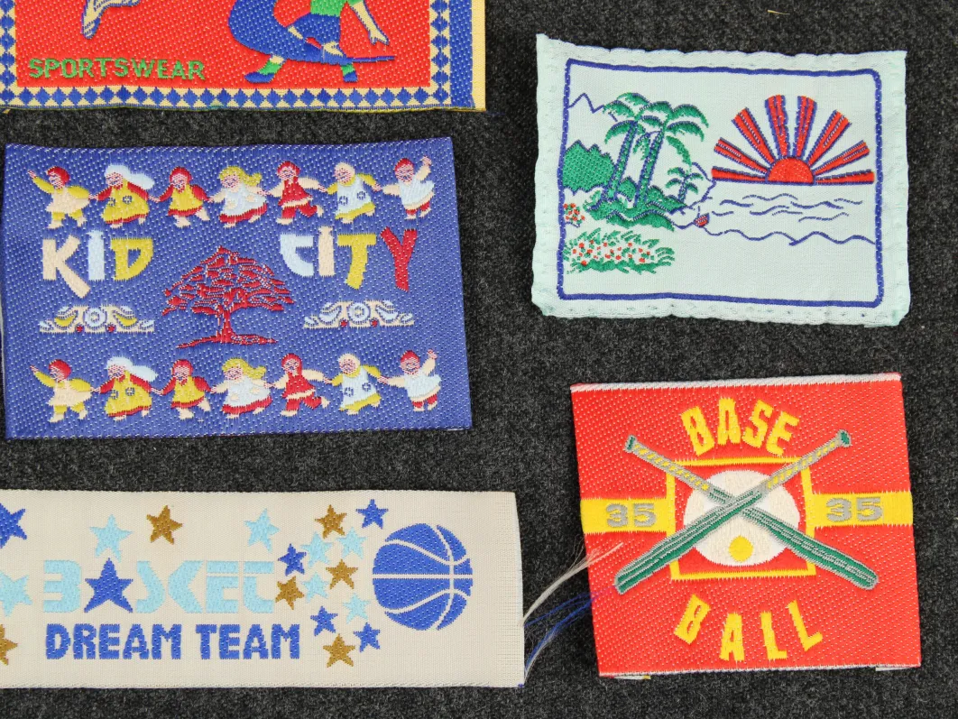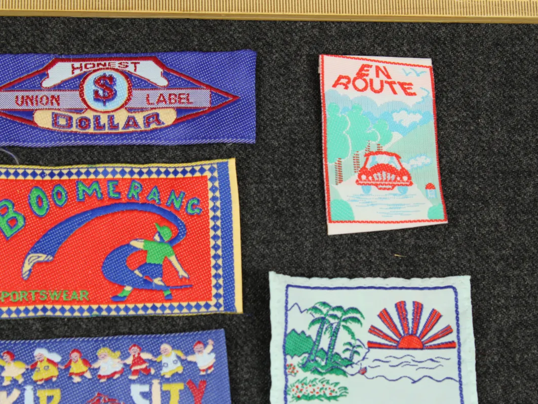 古着から取り外したタグ(やしの木と太陽のもの)にはミシン跡、歪みがあります。