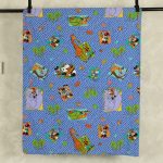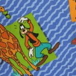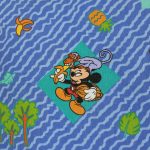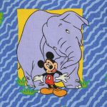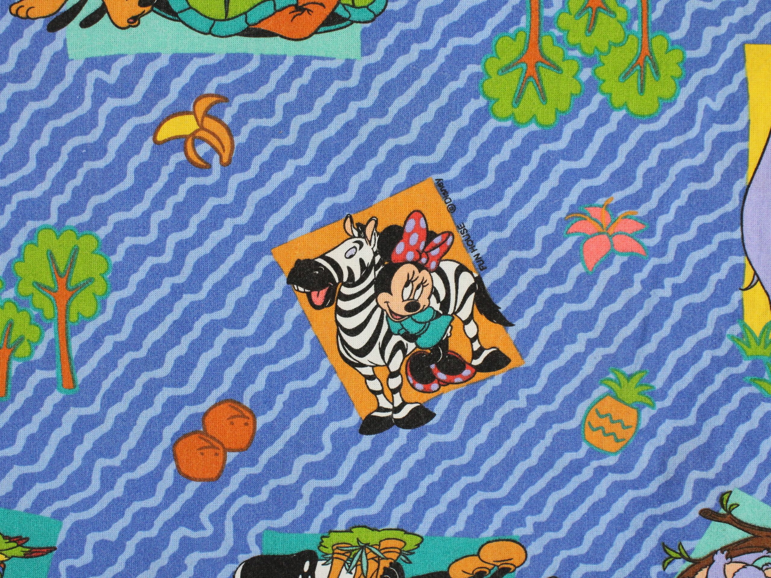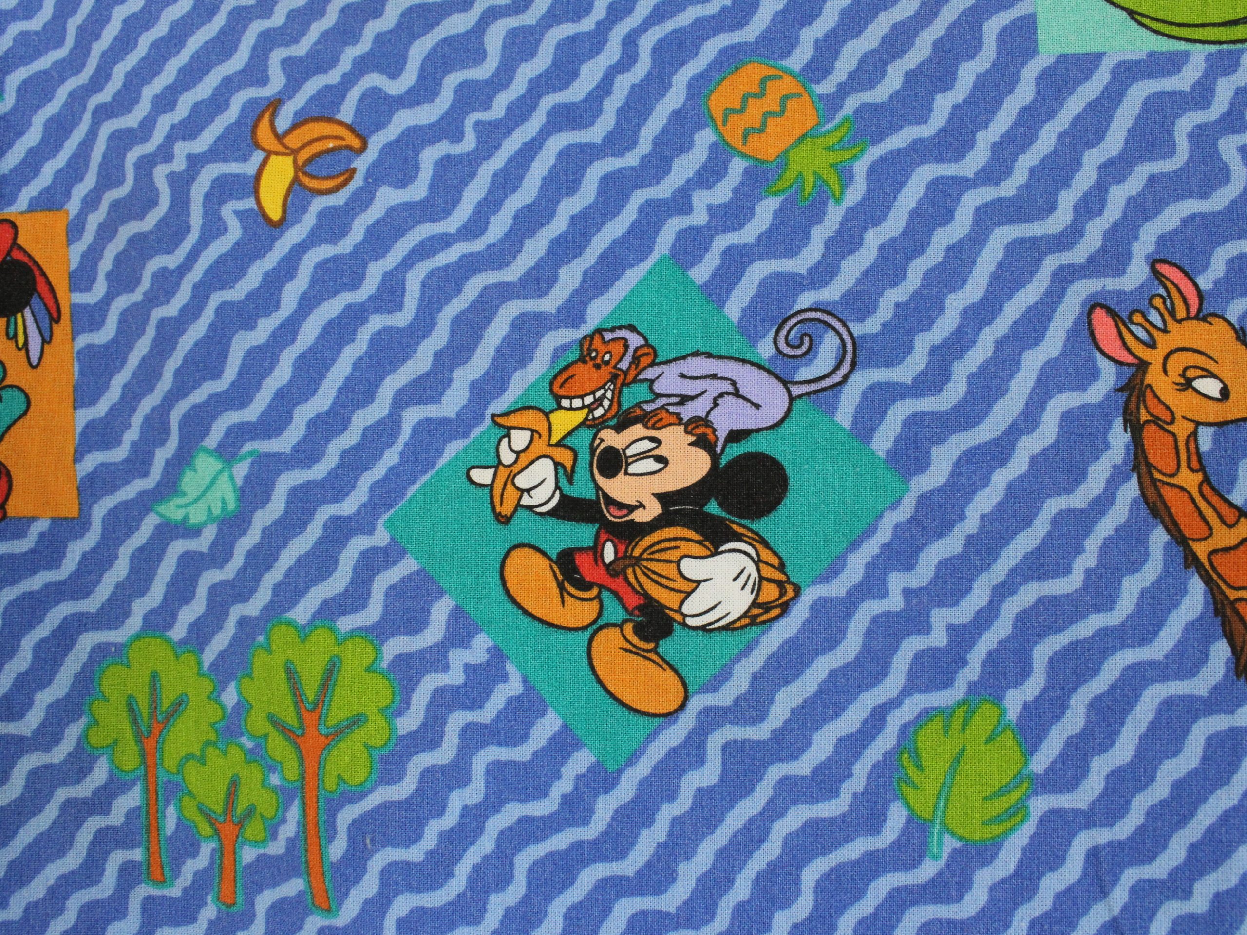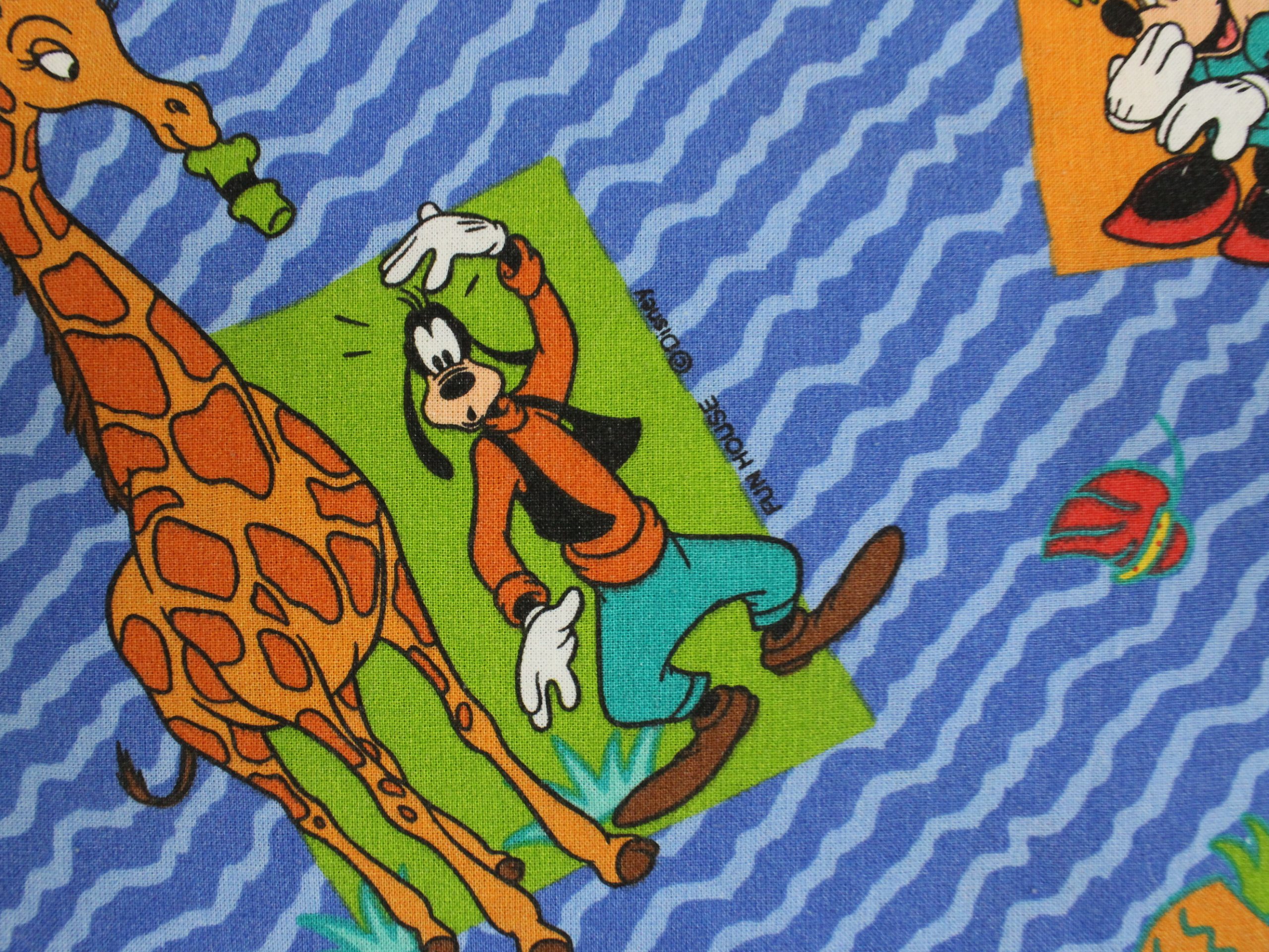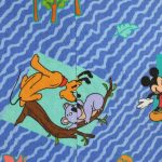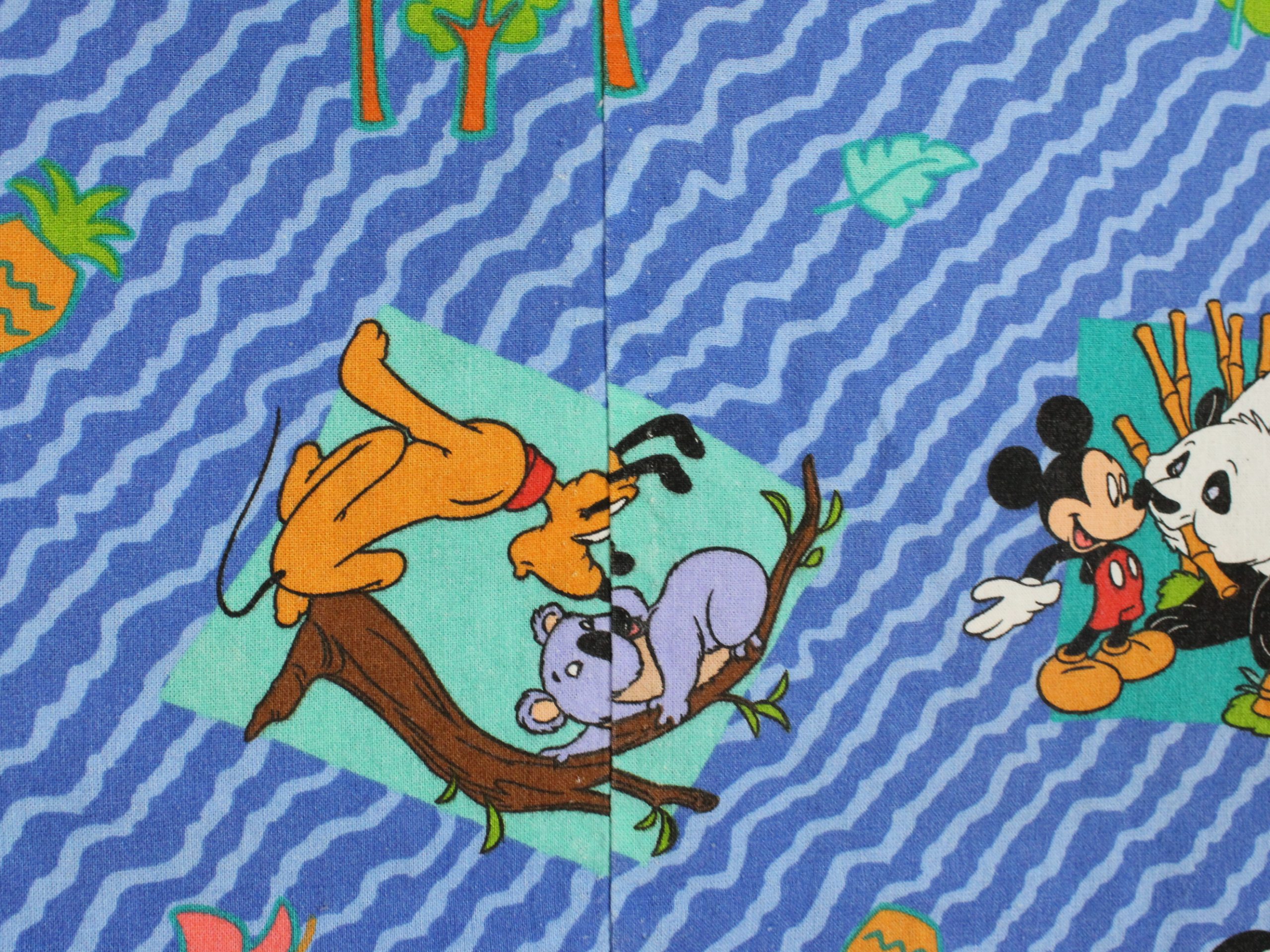 ミッキーと仲間たちのアニマル柄、ベビー布団カバーです。両面同じ絵柄。1枚の布で仕立てられており、片面の中心に縫い目があります。