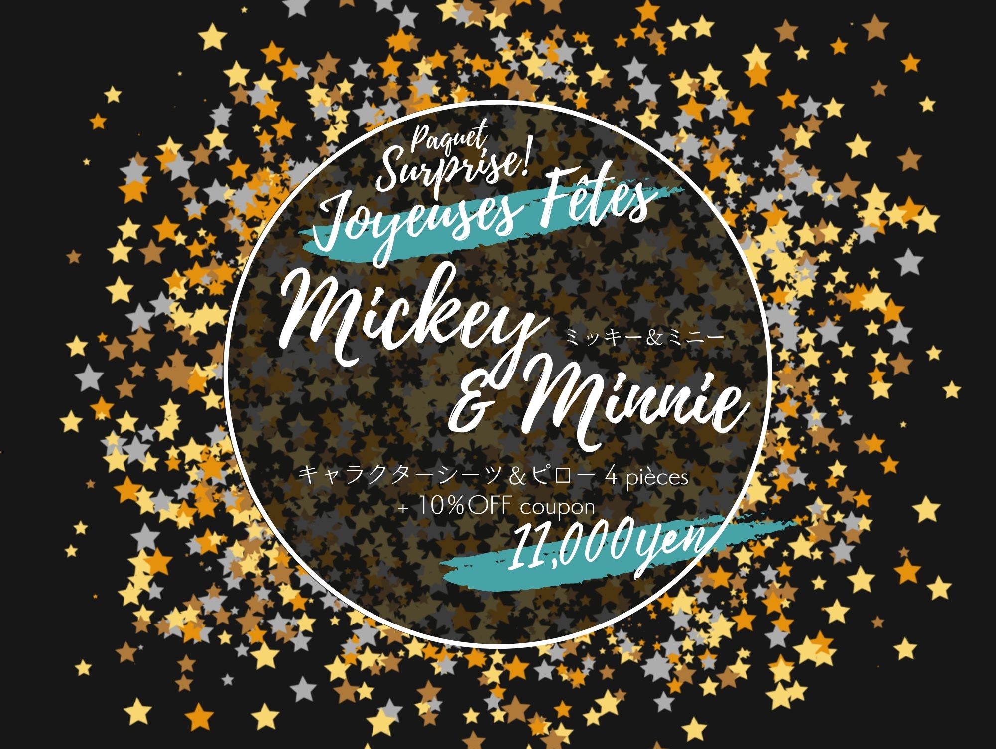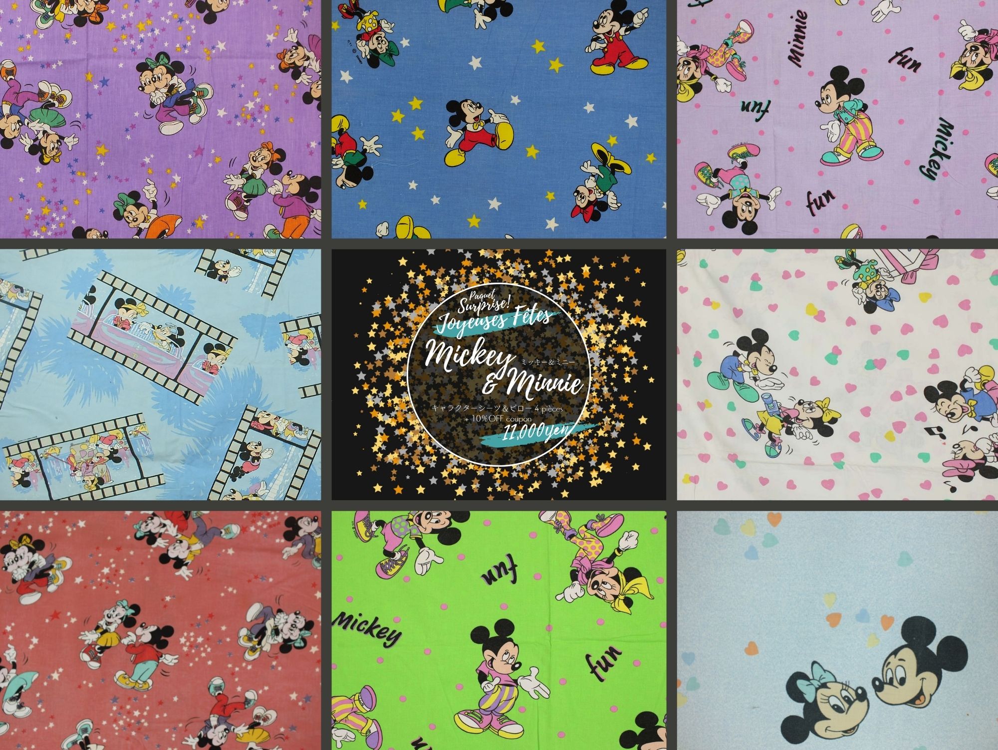 ディズニー、ミッキー&ミニー、キャラクタービンテージシーツのお楽しみサプライズパックです。画像はイメージで、実際にお届けするものとは異なります。
