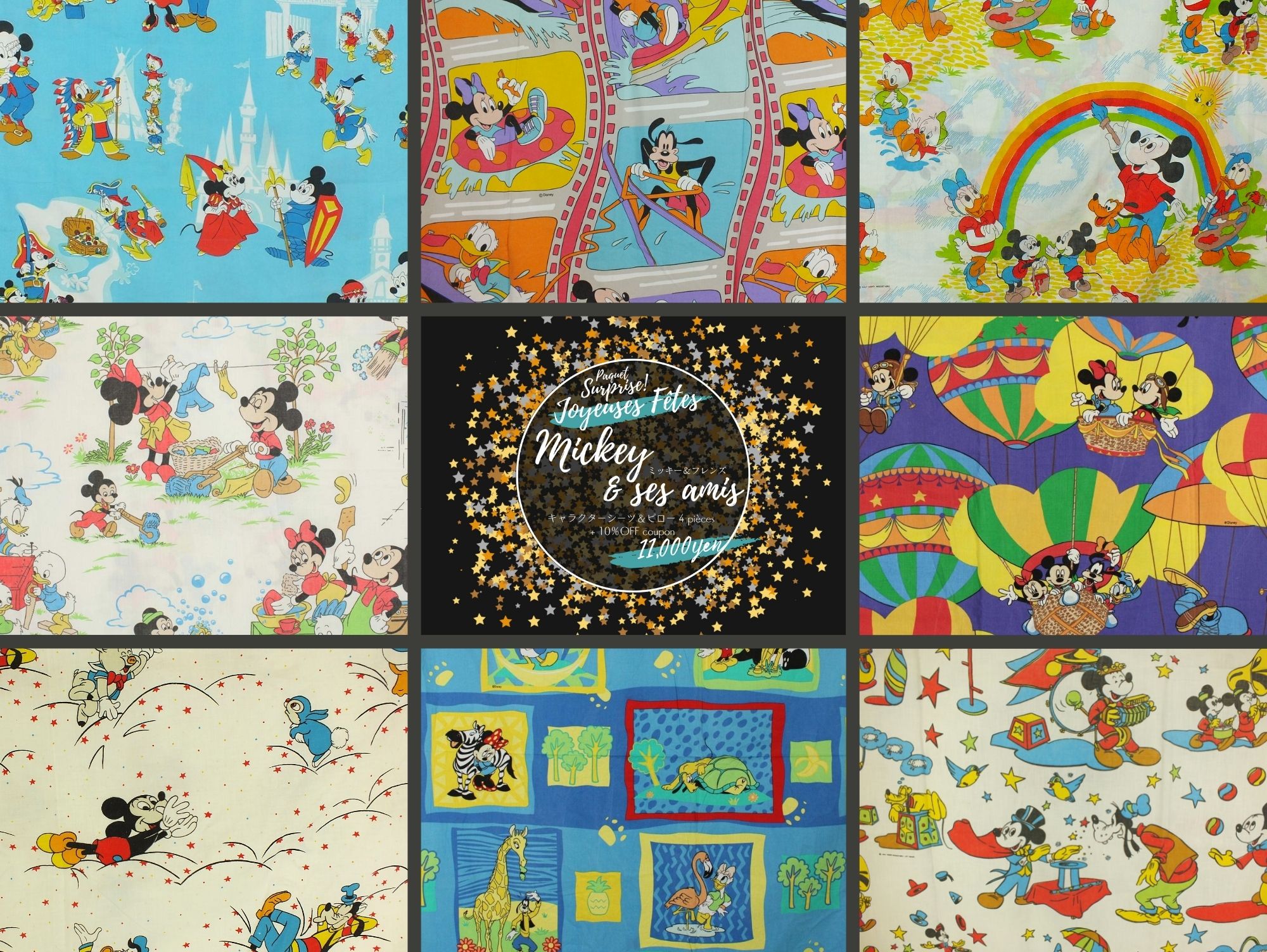 サプライズパック Joyeuse Fête ミッキーと仲間たち ディズニー キャラクタービンテージシーツの福袋