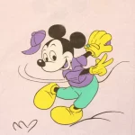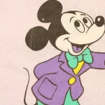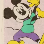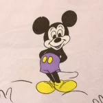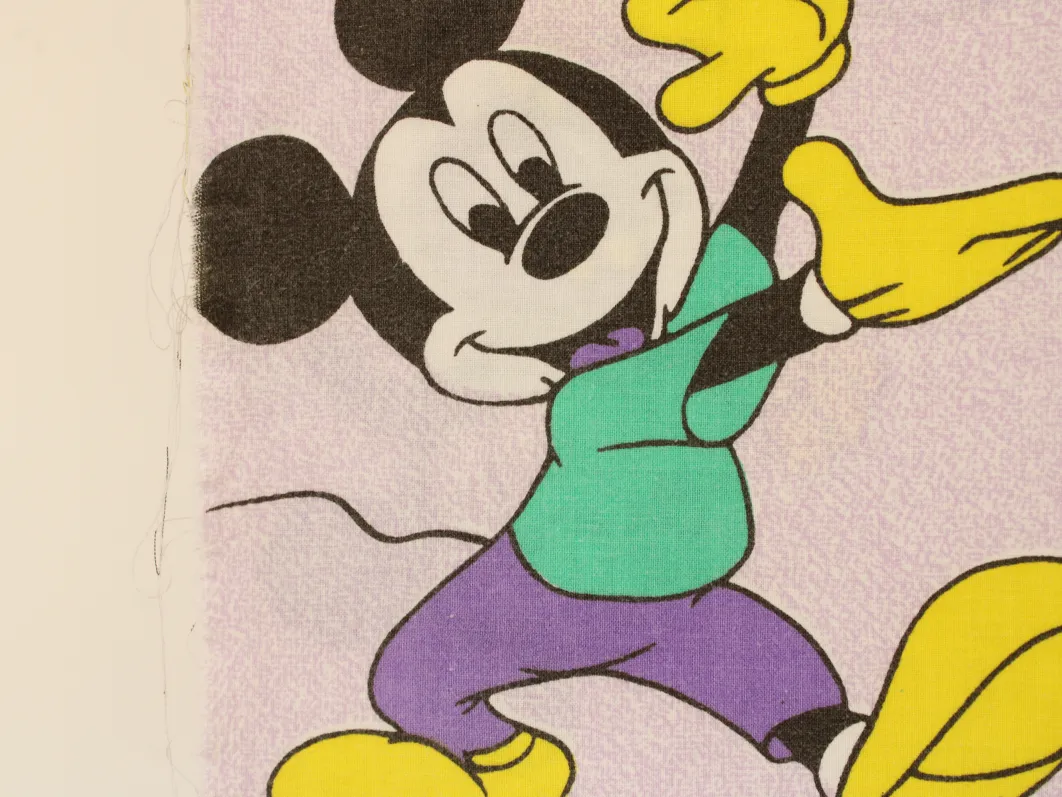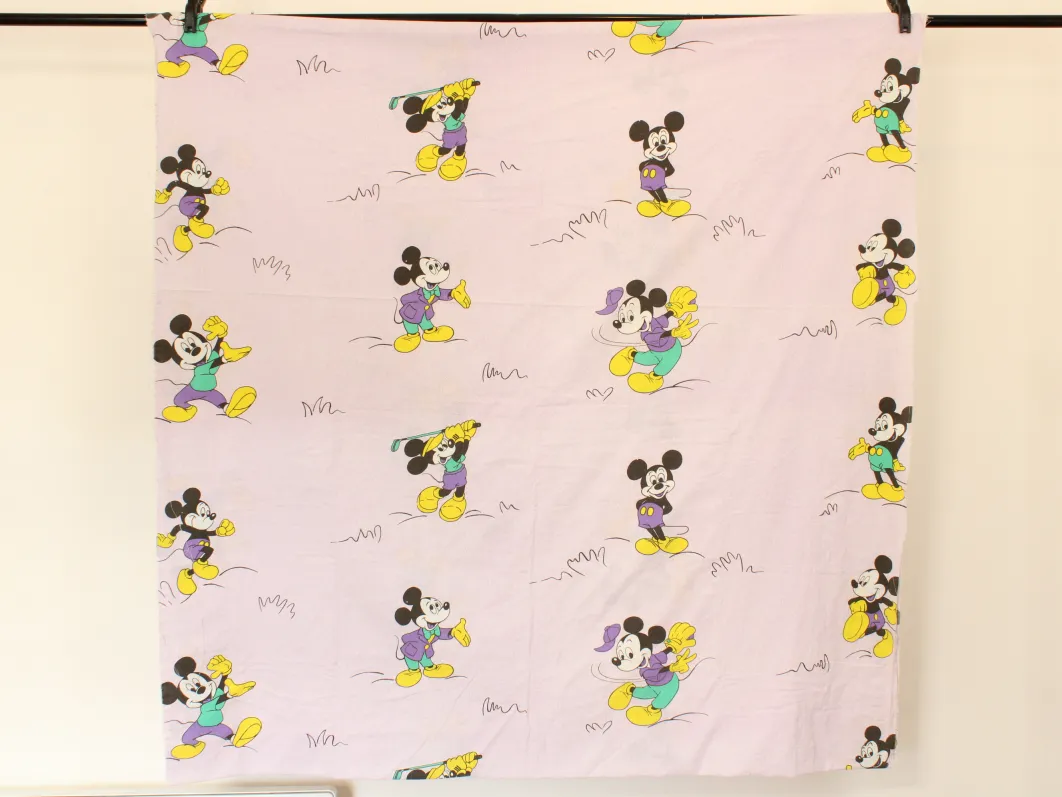 まだら模様のパープル地に、いろいろなポーズをしたミッキー。中古シーツ解体生地です。