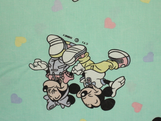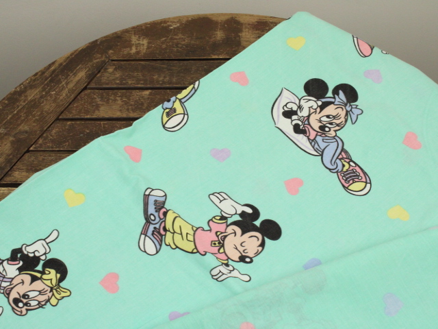ディズニー、ミッキー、ミニー、キャラクタービンテージシーツ。80年代フランス。